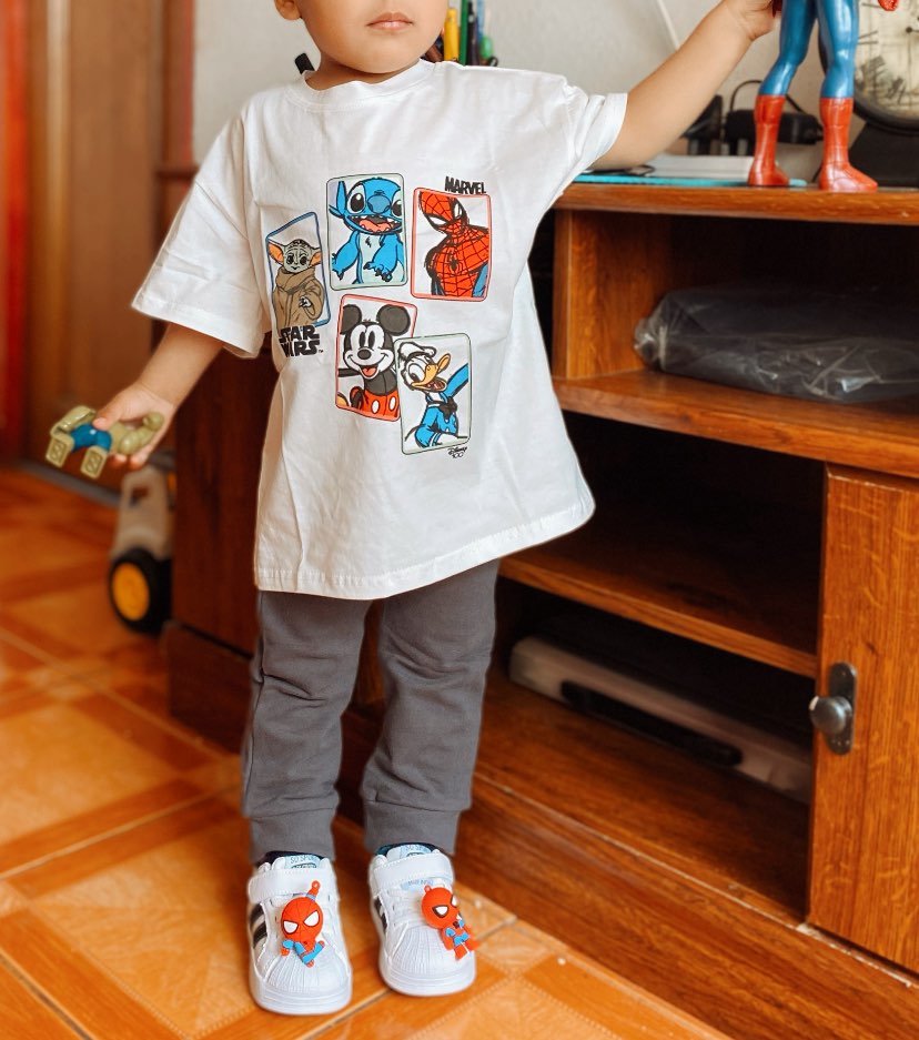 The colors are very vibrant and the print is of excellent quality! Like the shirt, it is thin but for the price it is super. I bought the size 5T for my 1 year 9 months old, it is 86,5 cm and it is big. So consider the measurements before ordering, but excellent product!