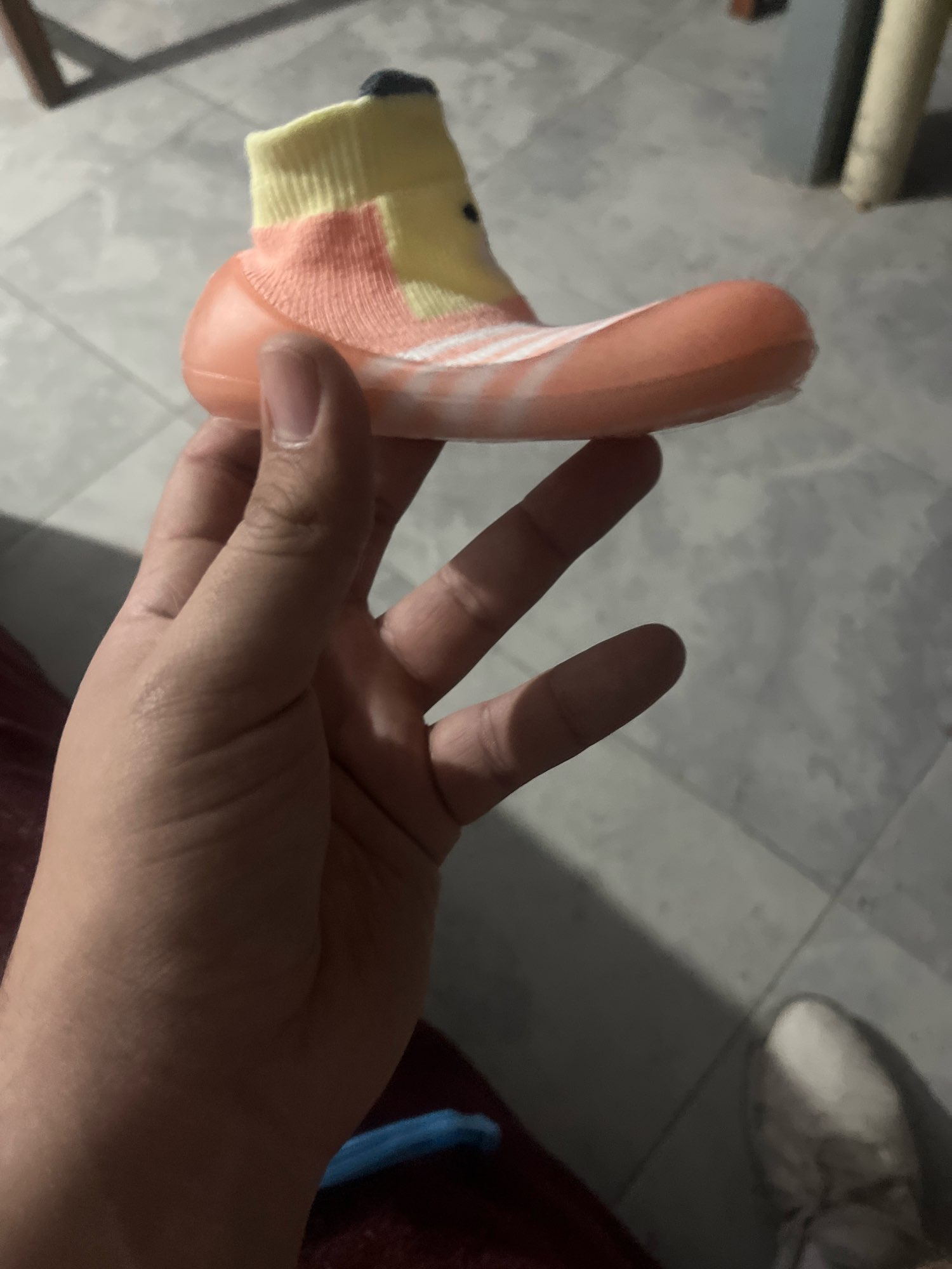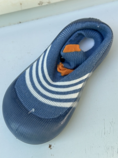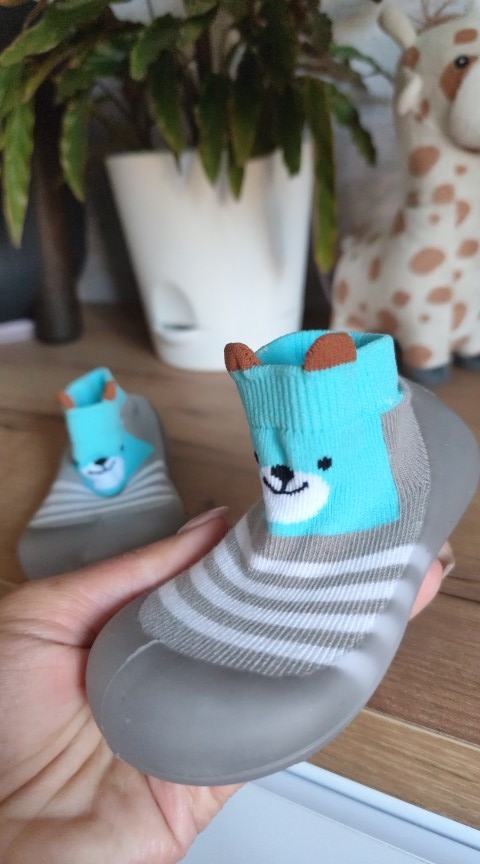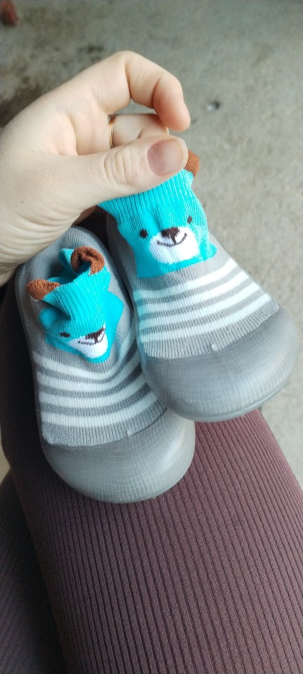 Shoes for children. Sole with soft silicone. Flexible. Dress like socks, but the child does not comb the sock. Super cool baby