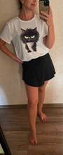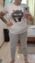 The figure of the cat looks great. Undershirt made of artificial material with gloss. I took a size bigger is just right.