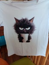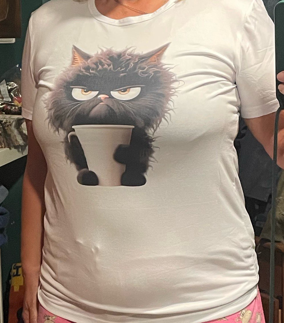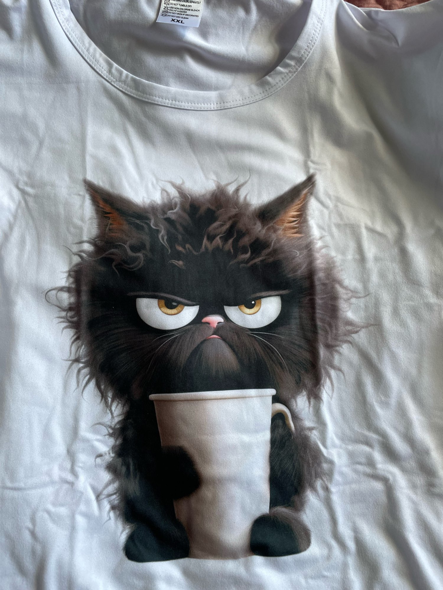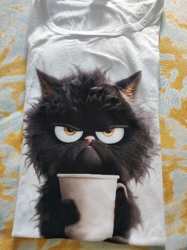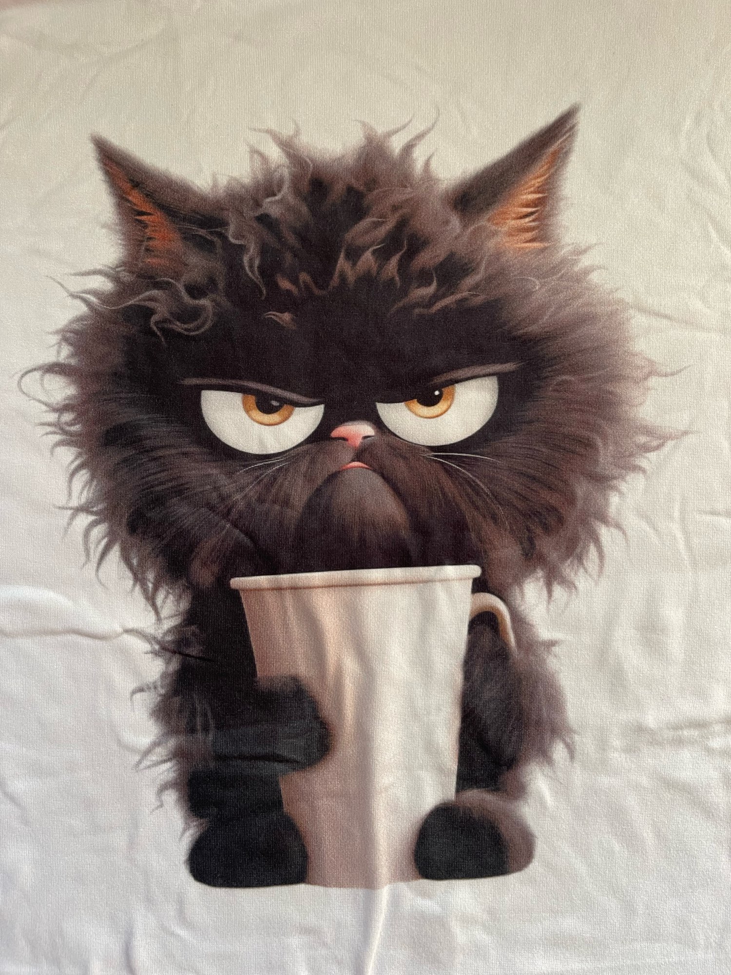 ADORABLE KITTY SHIRT! My mom is very pleased with it. Material is so soft and slightly stretchy. The Printed Kitty is very well done.