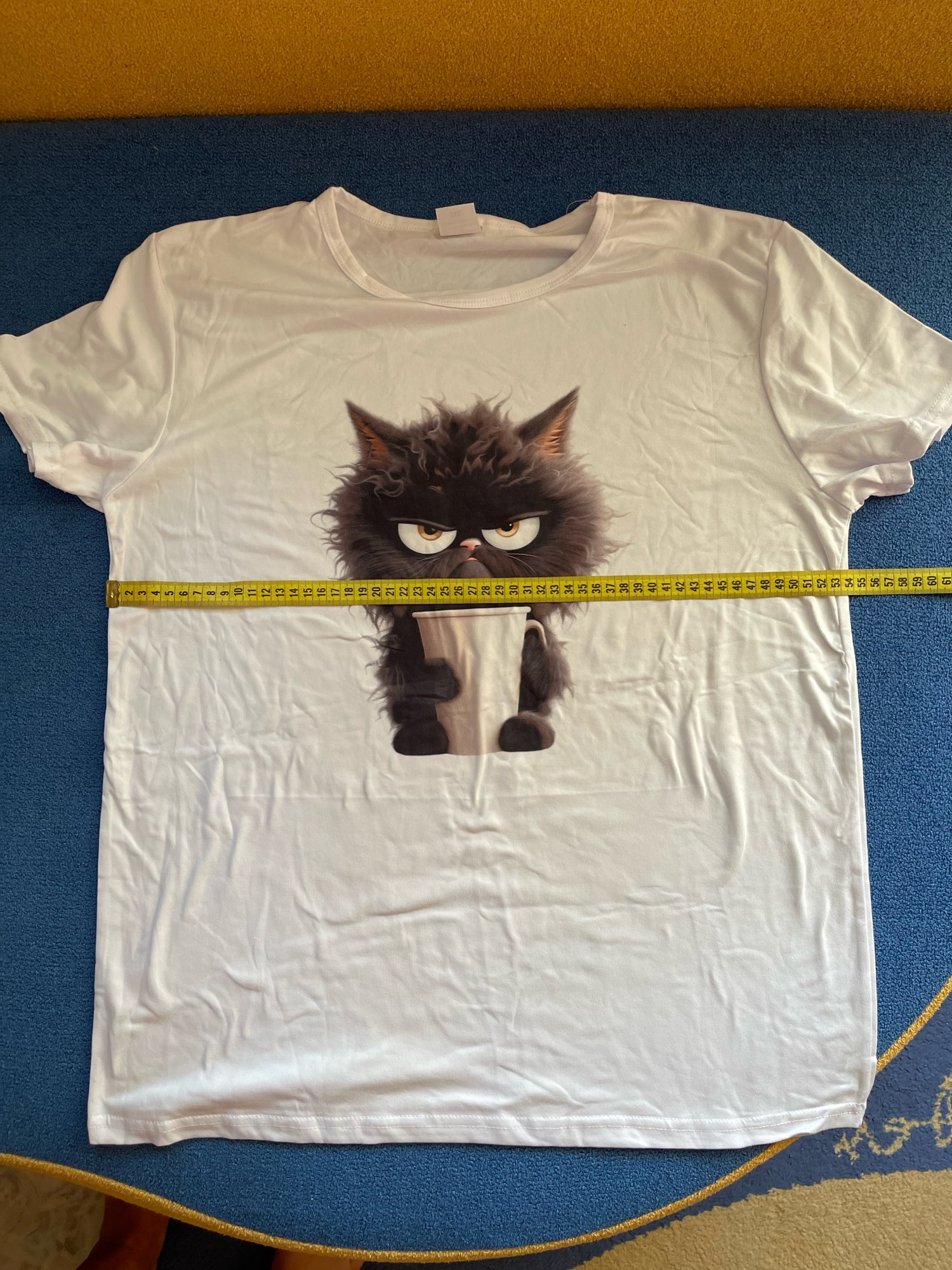 Cool T-shirt, the quality is good, similar to cotton, but polyester, body-friendly! Drawing as drawn, not film. Ordered a specially large size, so that there was an over, height 170 cm, covers the rear almost all. 97-74-106, it was possible to take a size less. Recommend! Came quickly! Thank you!