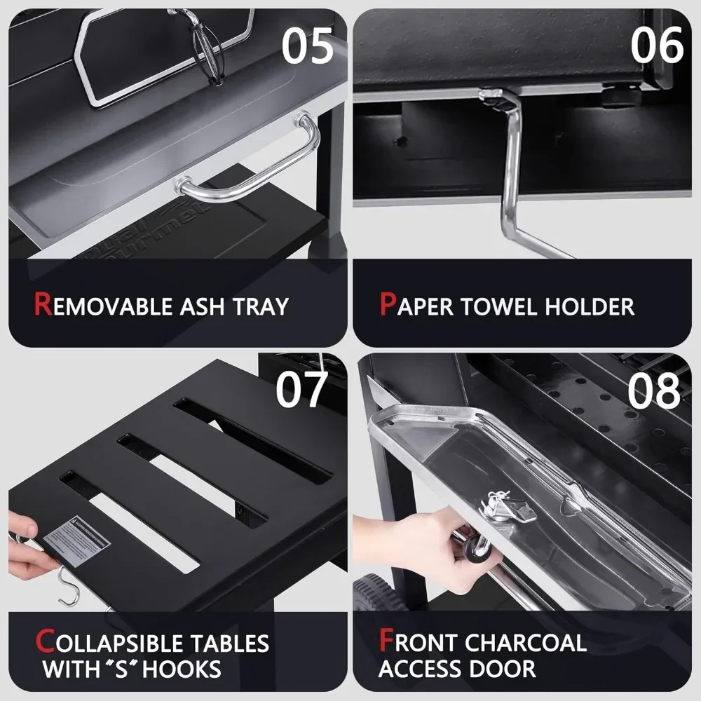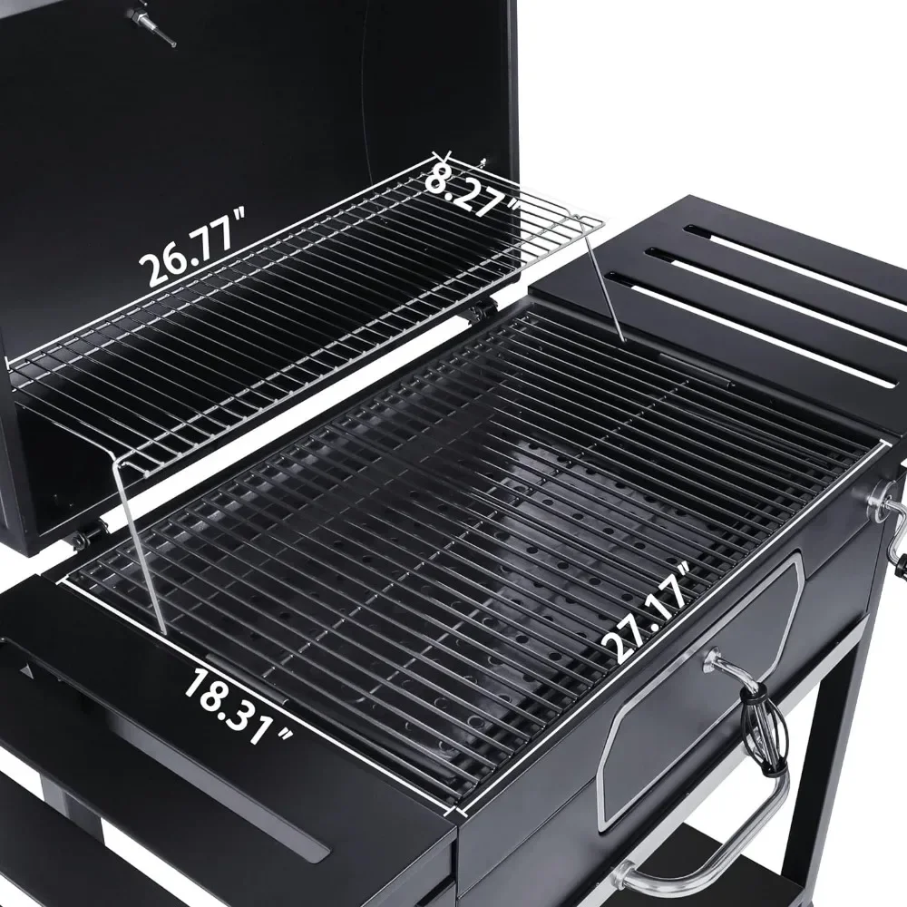 - Easy Adjustable Charcoal Pan: Height-adjustable charcoal pan with an easy-to-handle crank handle fine-tunes temperature control and cooks food efficiently. It can hold charcoal up to 3.4 kg/7.5 lb.