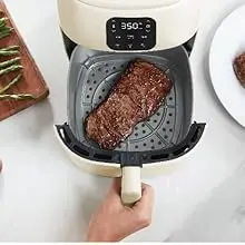 Cook healthier, crispy food in a OUIO with Ceramic Air Fryer! This versatile ceramic, electric air fryer uses Air Crisp technology, cooking food with hot air instead of oil, reducing added fat by 70-80%. You’ll love the benefits of ceramic in the kitchen. The ceramic coated air fryer has an easy-release nonstick surface that requires less oil and makes it an easy clean air fryer.