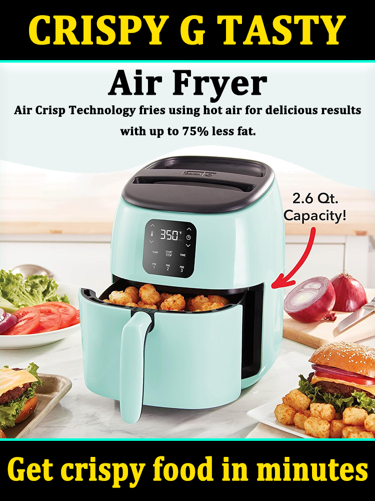 The convenient mini air fryer is sized for any kitchen, making storage easy without taking up too much room. The 2.6 qt. capacity and redesigned Crisper Basket allows for greater surface area, ensuring perfectly crisp food, every time.