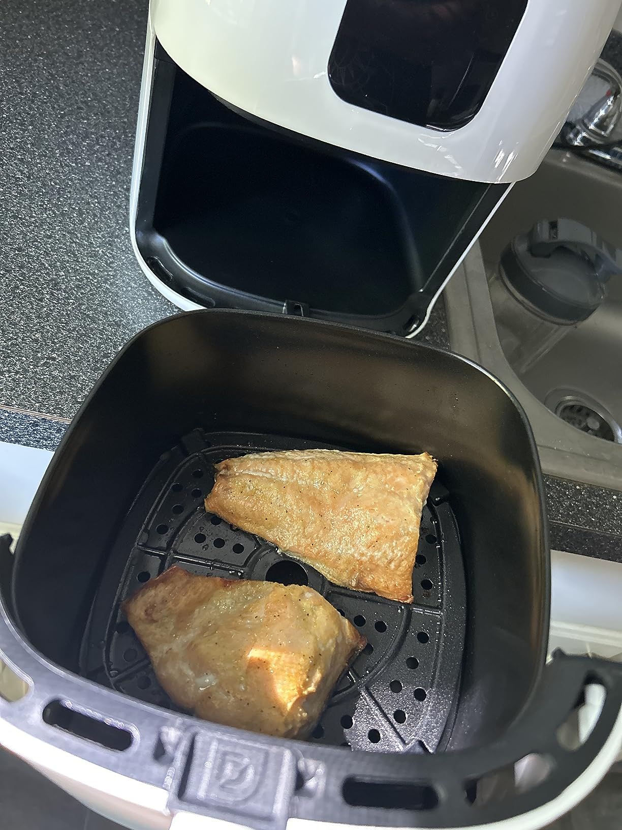 This air fryer is small, quiet, can make a variety of delicious dishes, is easy to use, and can be cleaned directly in the dishwasher. It's perfect!