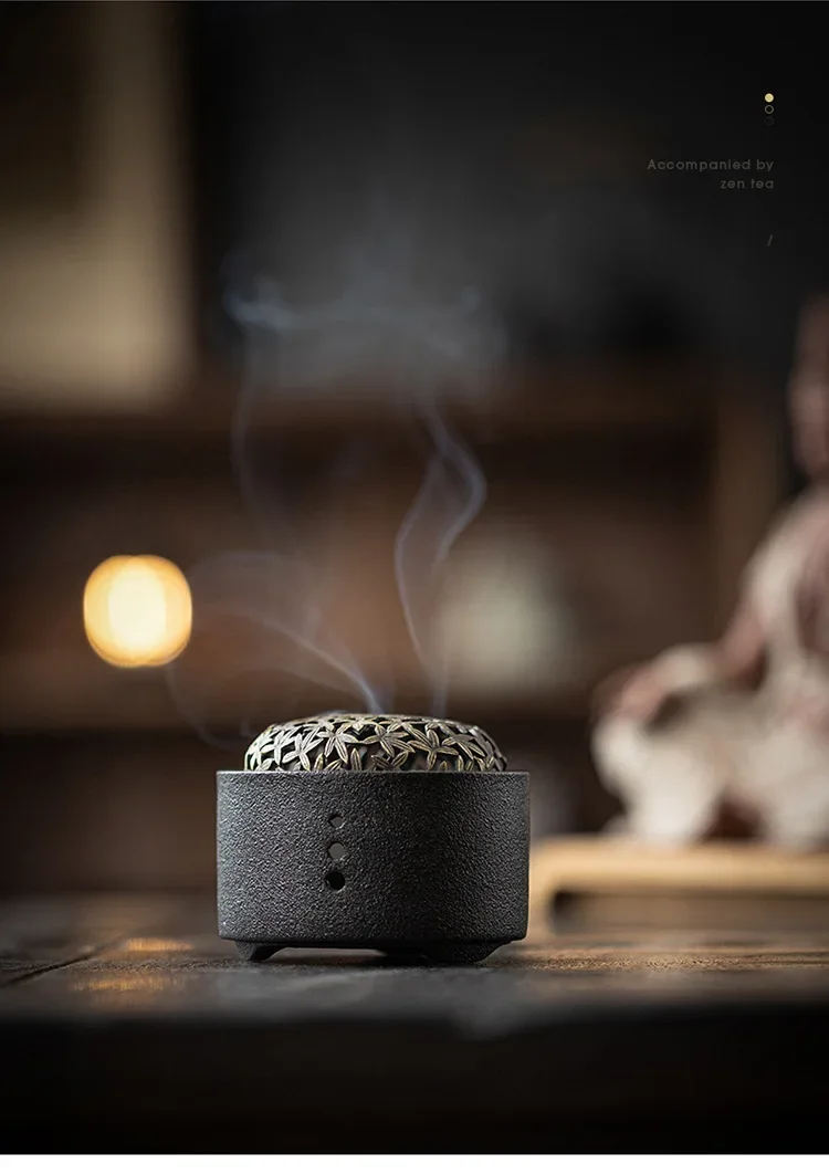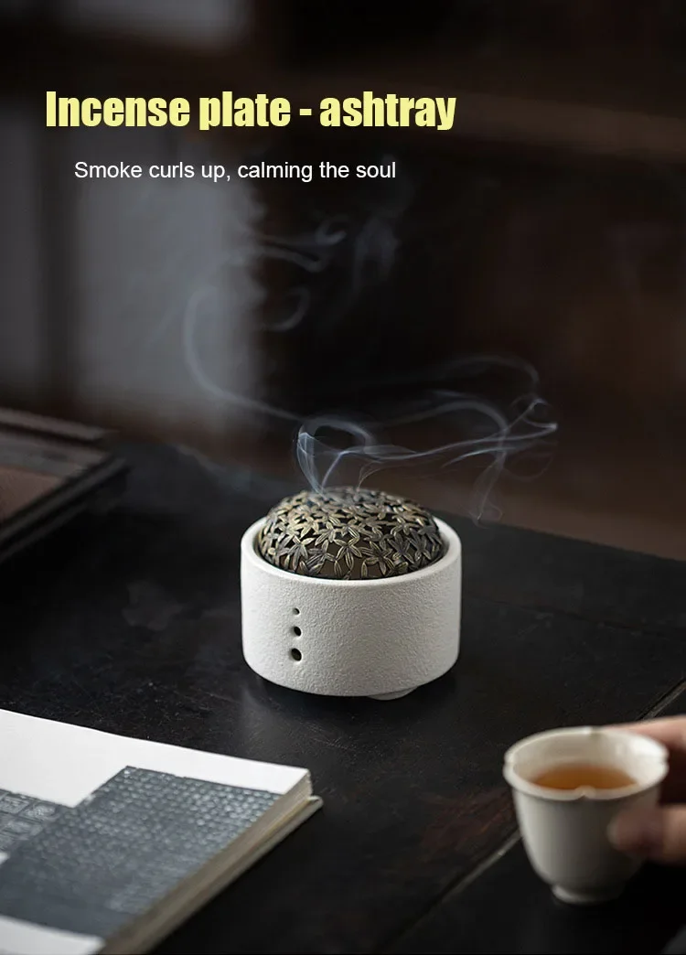 Ceramic Incense Stove Zen Retro Mosquito Incense Stove Home Decoration Ashtray Desktop Decoration Mesh Cover Incense Plate