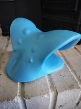 I LOVE THIS THING! It helps my headaches and gently stretches out my neck. It’s very comfortable and easy to lay on, and the instructions also tell you that you can lay on it forwards or backwards. The material is easy to wipe clean and soft, but I drape a pillowcase over it because I prefer the feel of it that way. Still, this thing has done wonders for my migraines. 😍