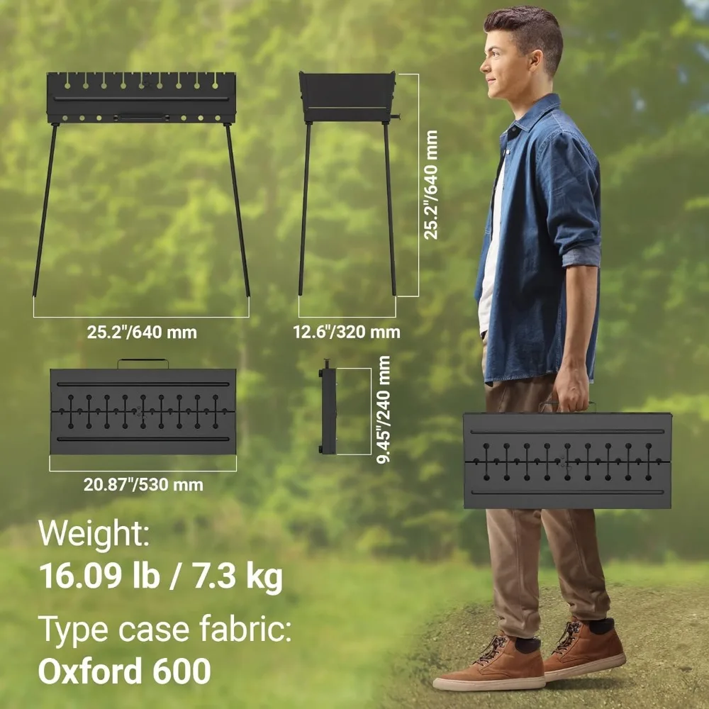 - Easy to Set Up and to Use: This portable barbecue grill is perfect for small house parties, camping, hiking, backpacking, picnics. It’s perfect to cook delicious food on this charcoal grill like shashlyk, shish, burgers, fish, steak, hot dogs, kebab, corn and more.
