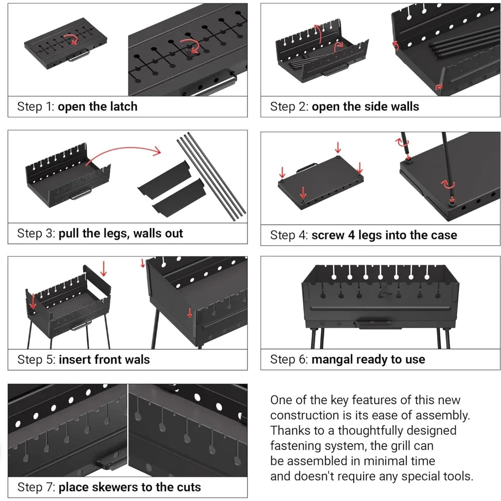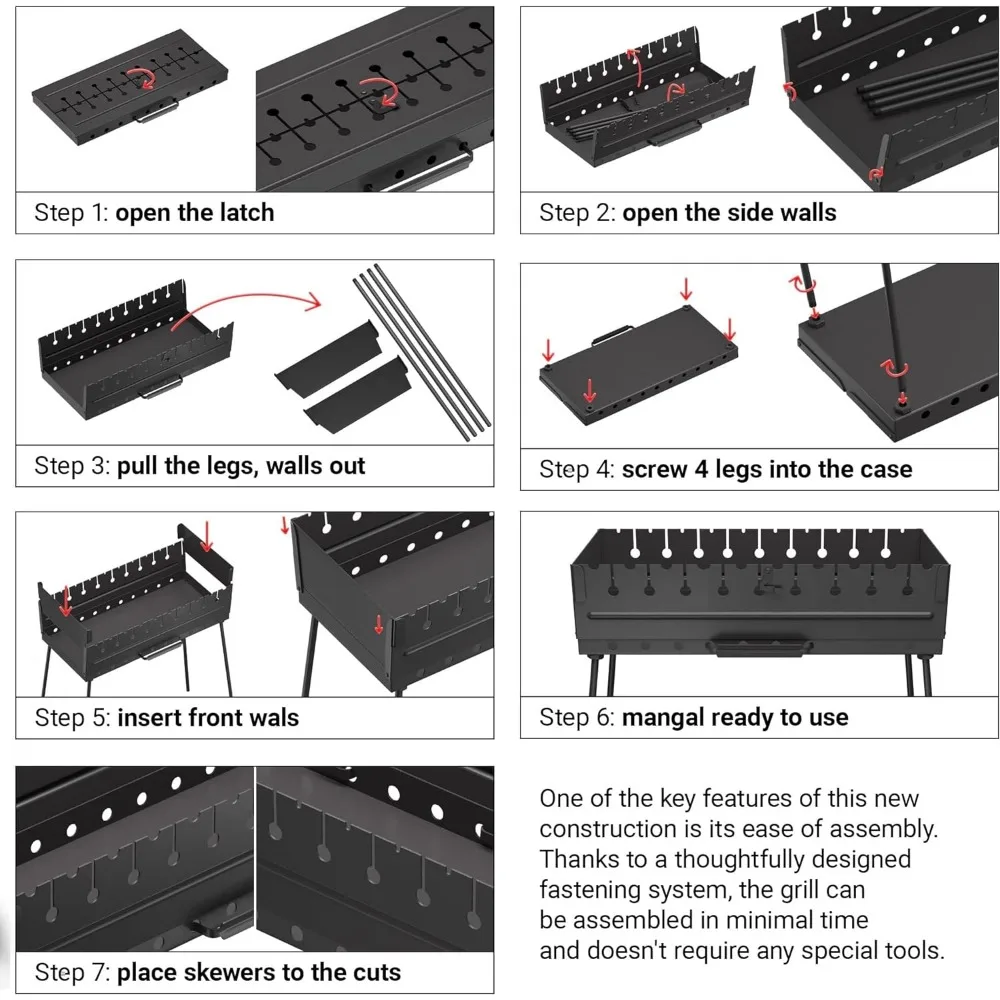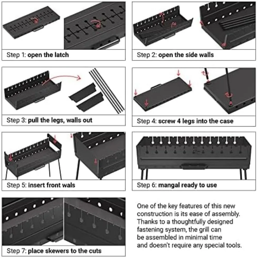 - Perfect to cook delicious food on this charcoal grill like shashlyk, shish, burgers, fish, steak, hot dogs, kebab, corn and more.