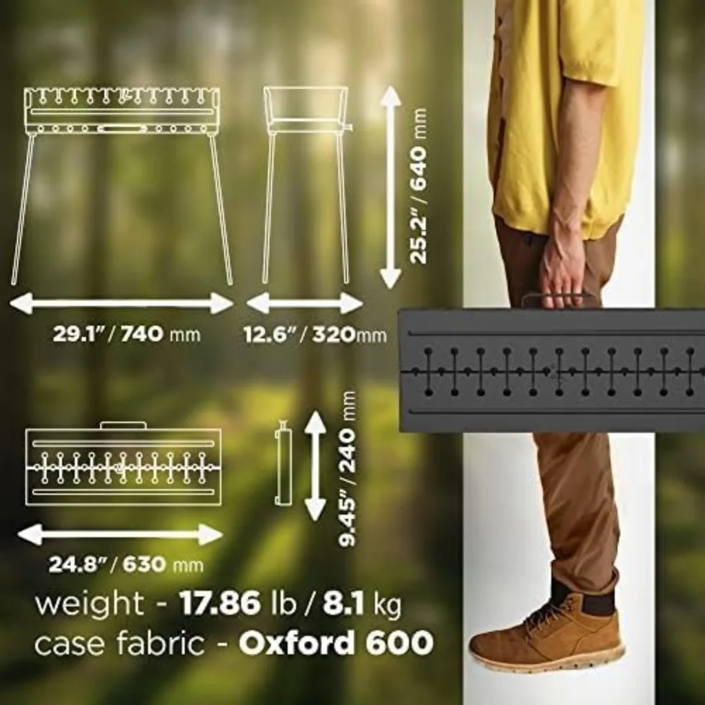 - Durable Structure: A strong, free-standing post keeps your grill secure and anchored to the ground. The assembly and disassembly of grates are simple, without tools. Folds flat to create its own carrying case.
