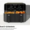 - DUAL AIR FRYER WITH 2 BASKETS: Cook food faster and more conveniently with two powerful air fryers in one with a combined 6-quart large air fryer capacity