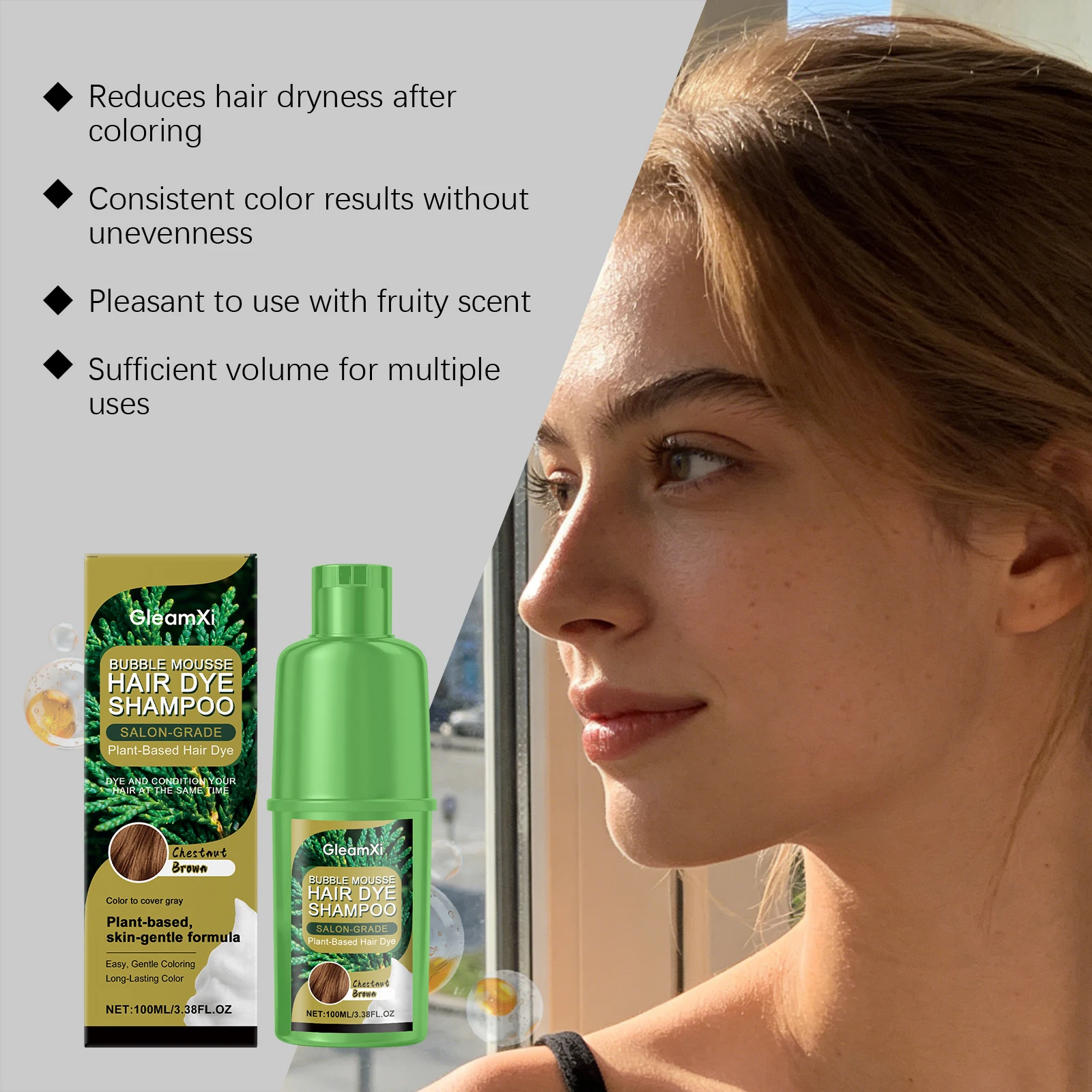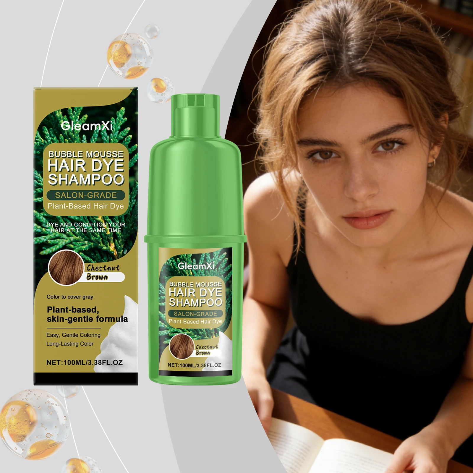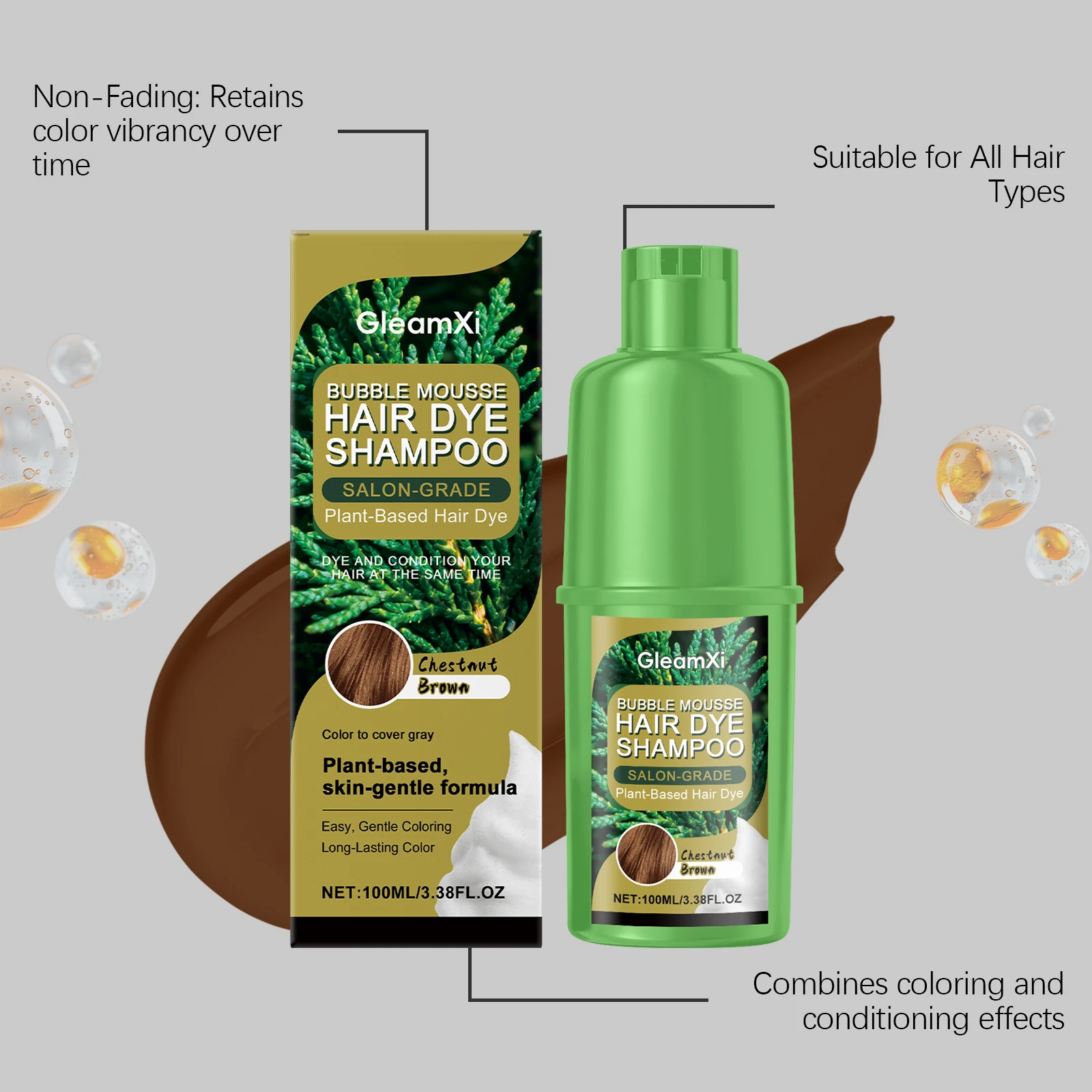 Chestnut plant bubble dye Gentle plant ingredients for hair, natural and convenient, easy to color without damaging hair