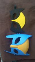 Size m for my five year old the mask is very plastic and immediately broke the brooch