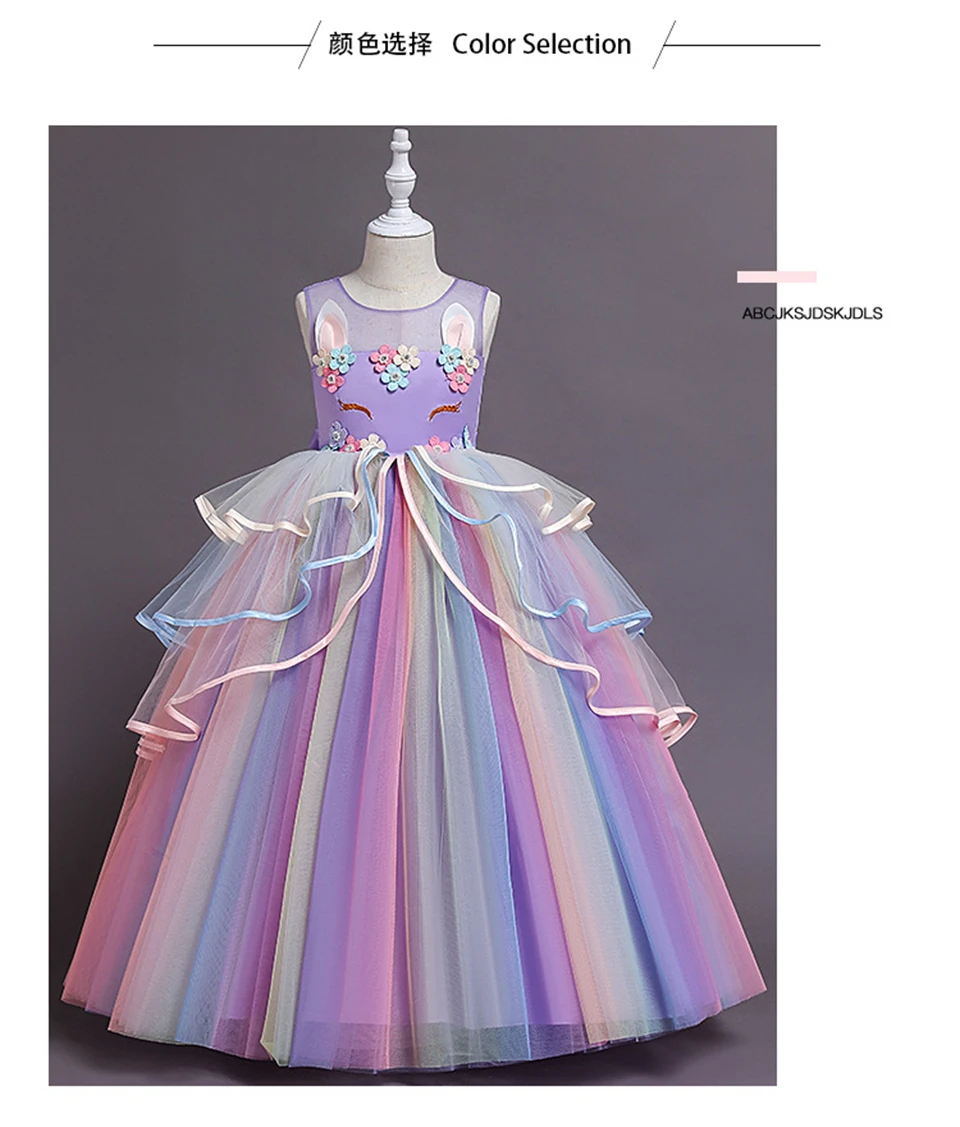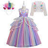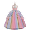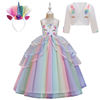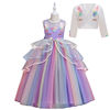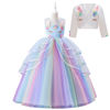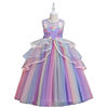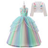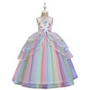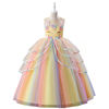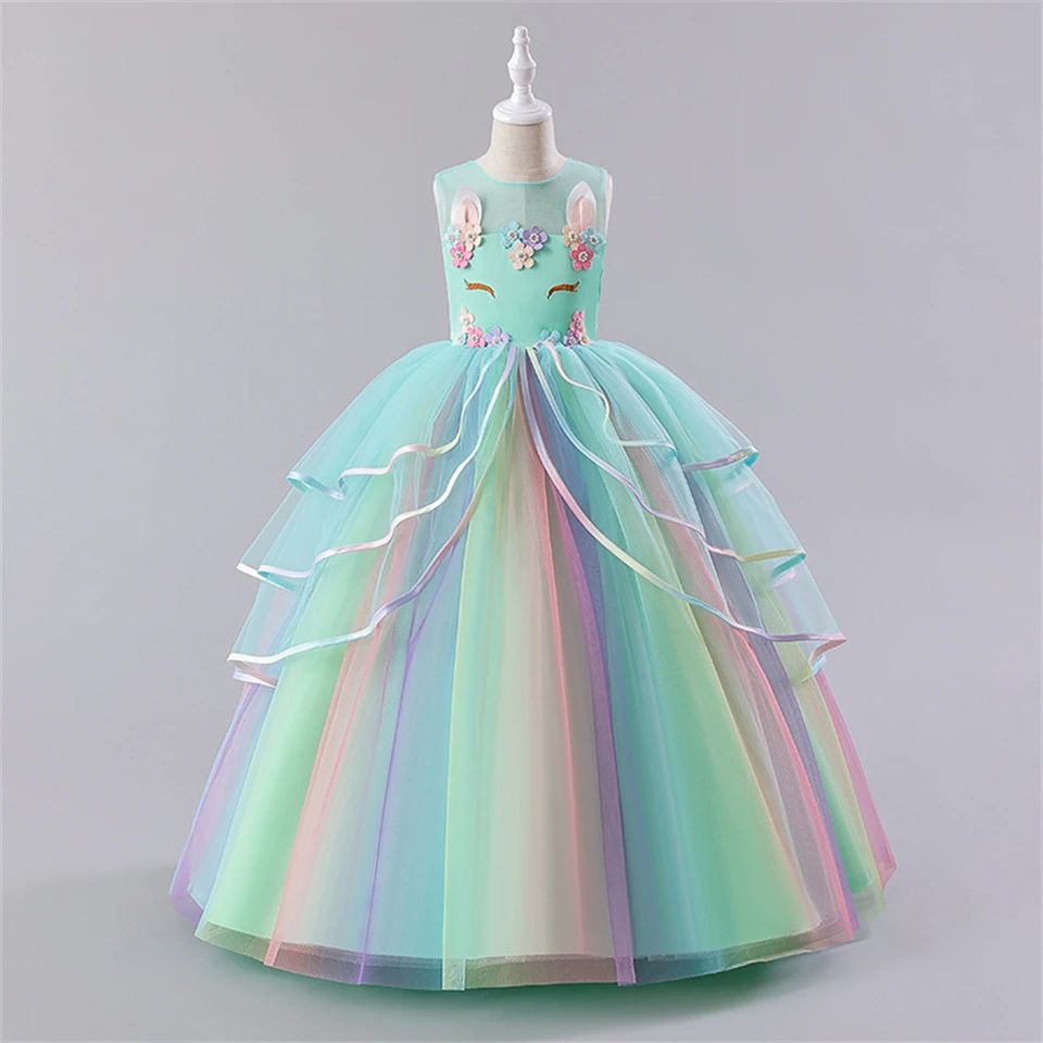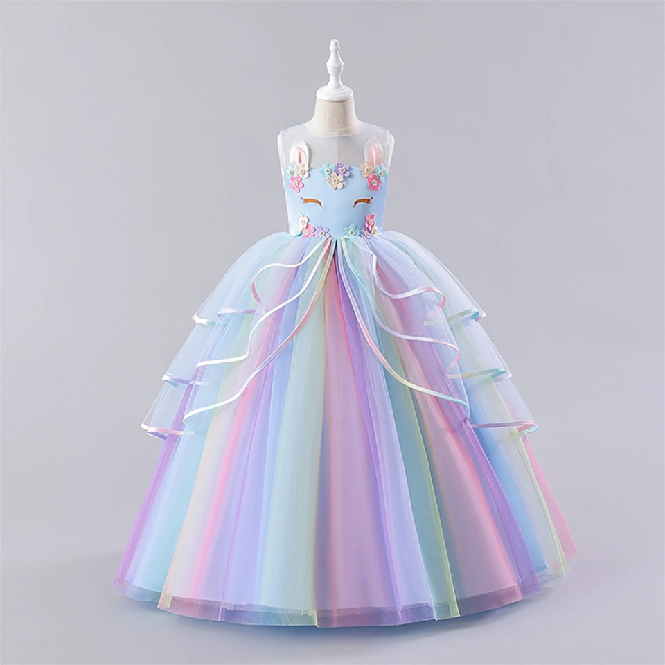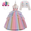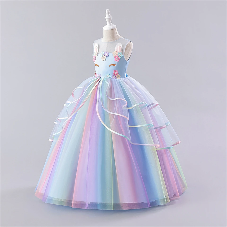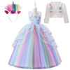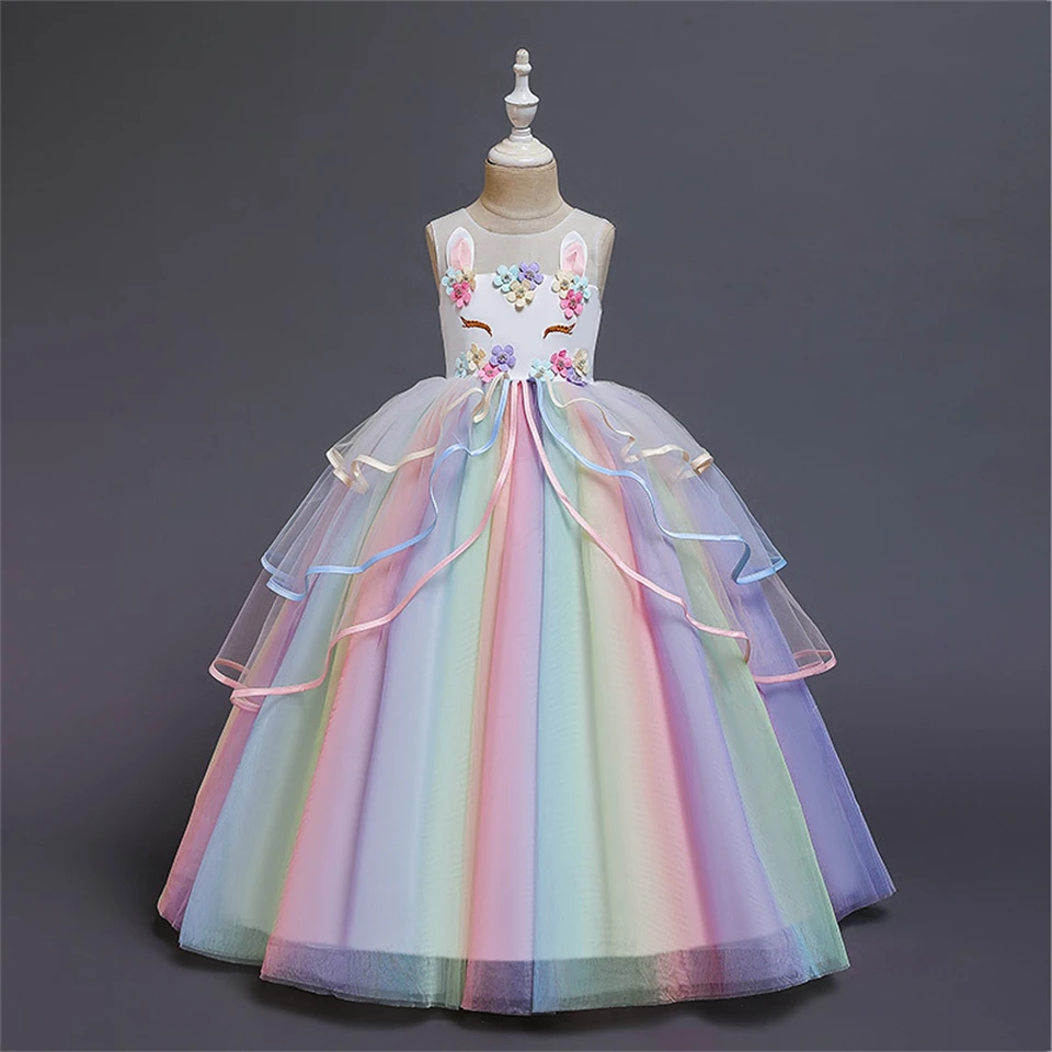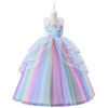 Children Christmas Rainbow Unicorn Elegant Dress for Girls Flower Colorful Fluffy Mesh Princess Birthday Party Pageant Dresses