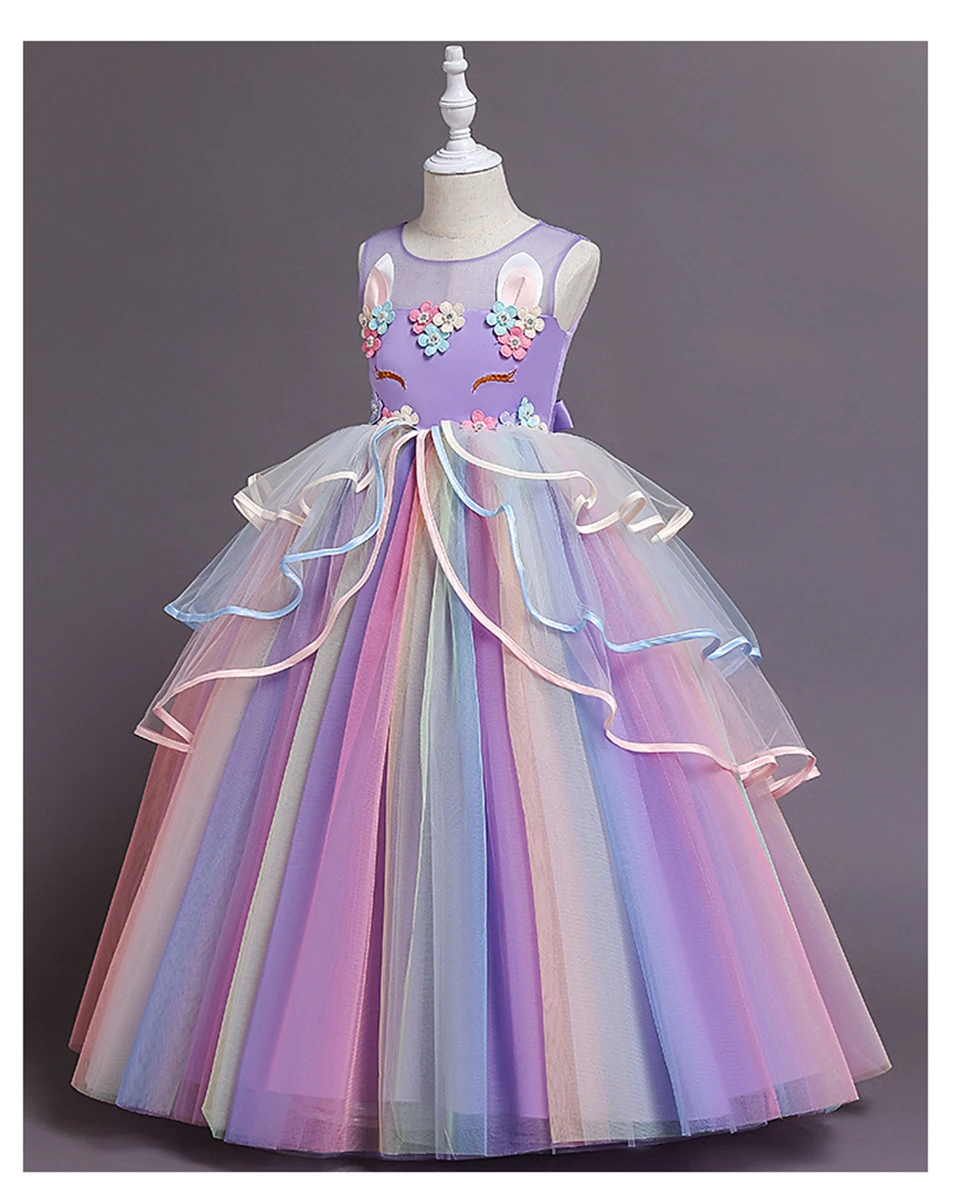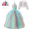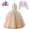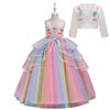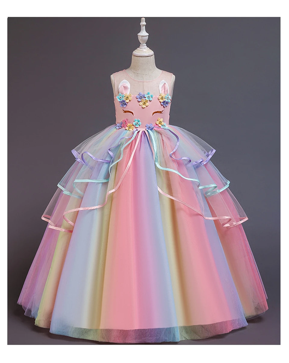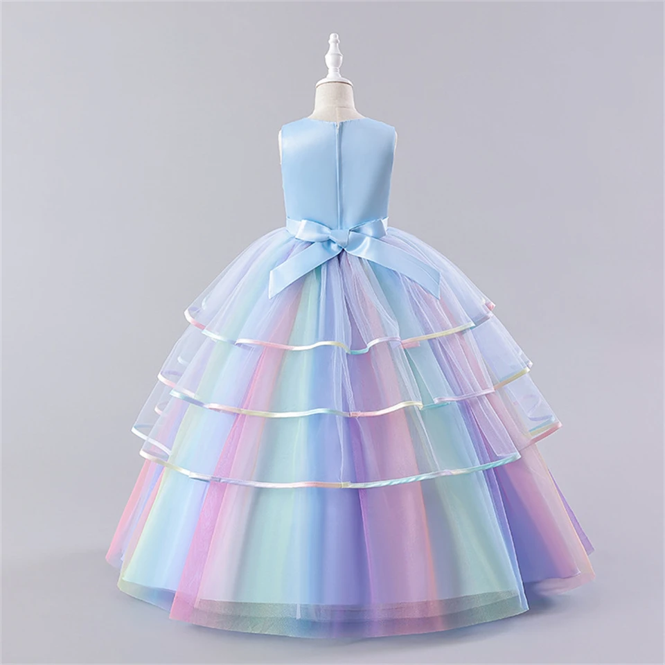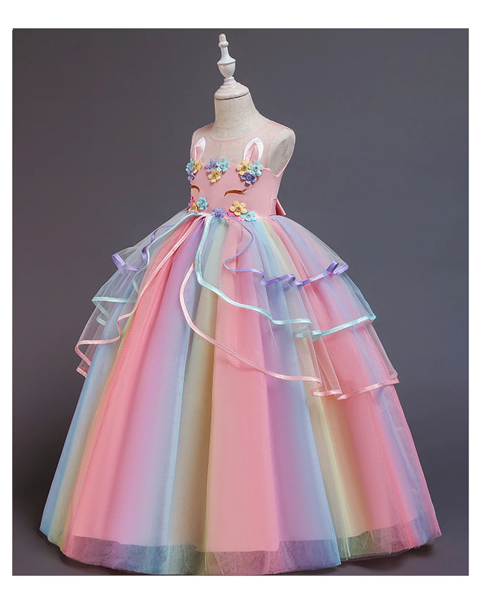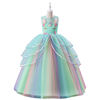 Children Christmas Rainbow Unicorn Elegant Dress for Girls Flower Colorful Fluffy Mesh Princess Birthday Party Pageant Dresses