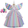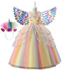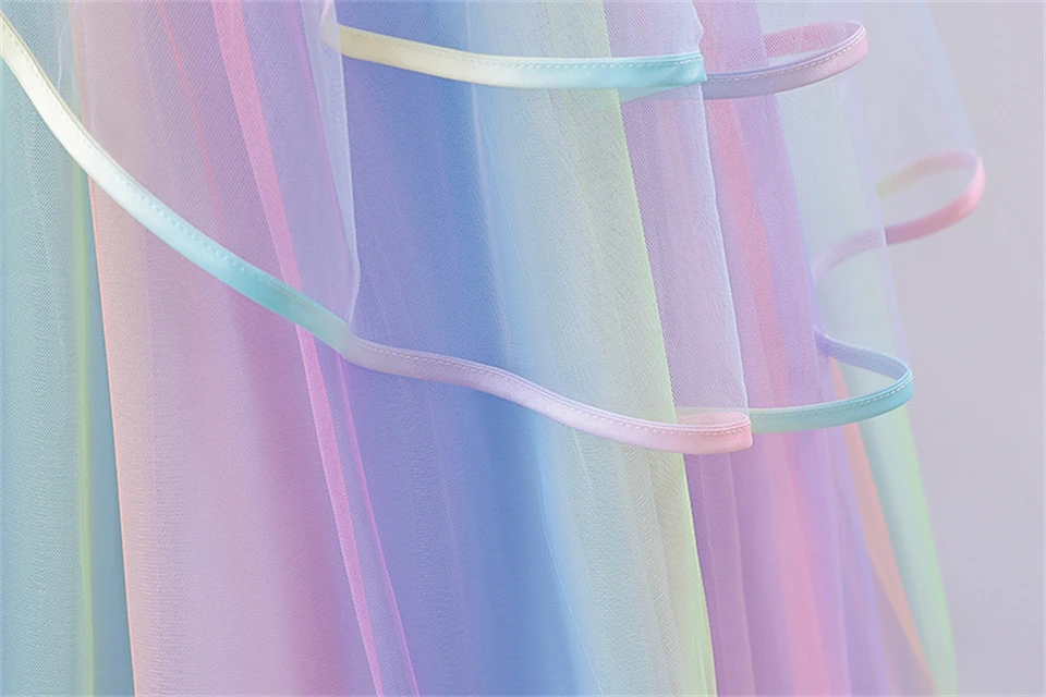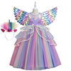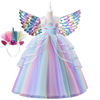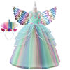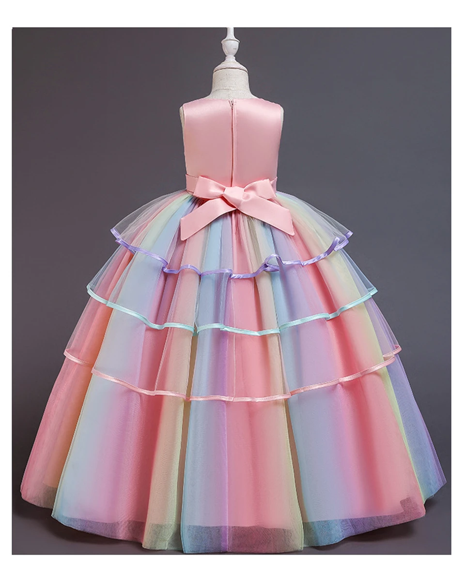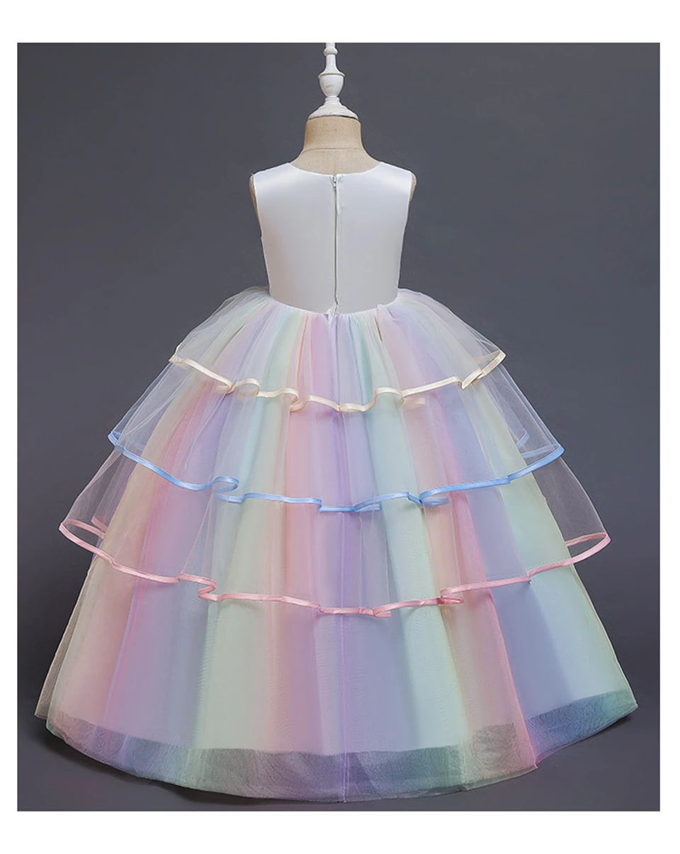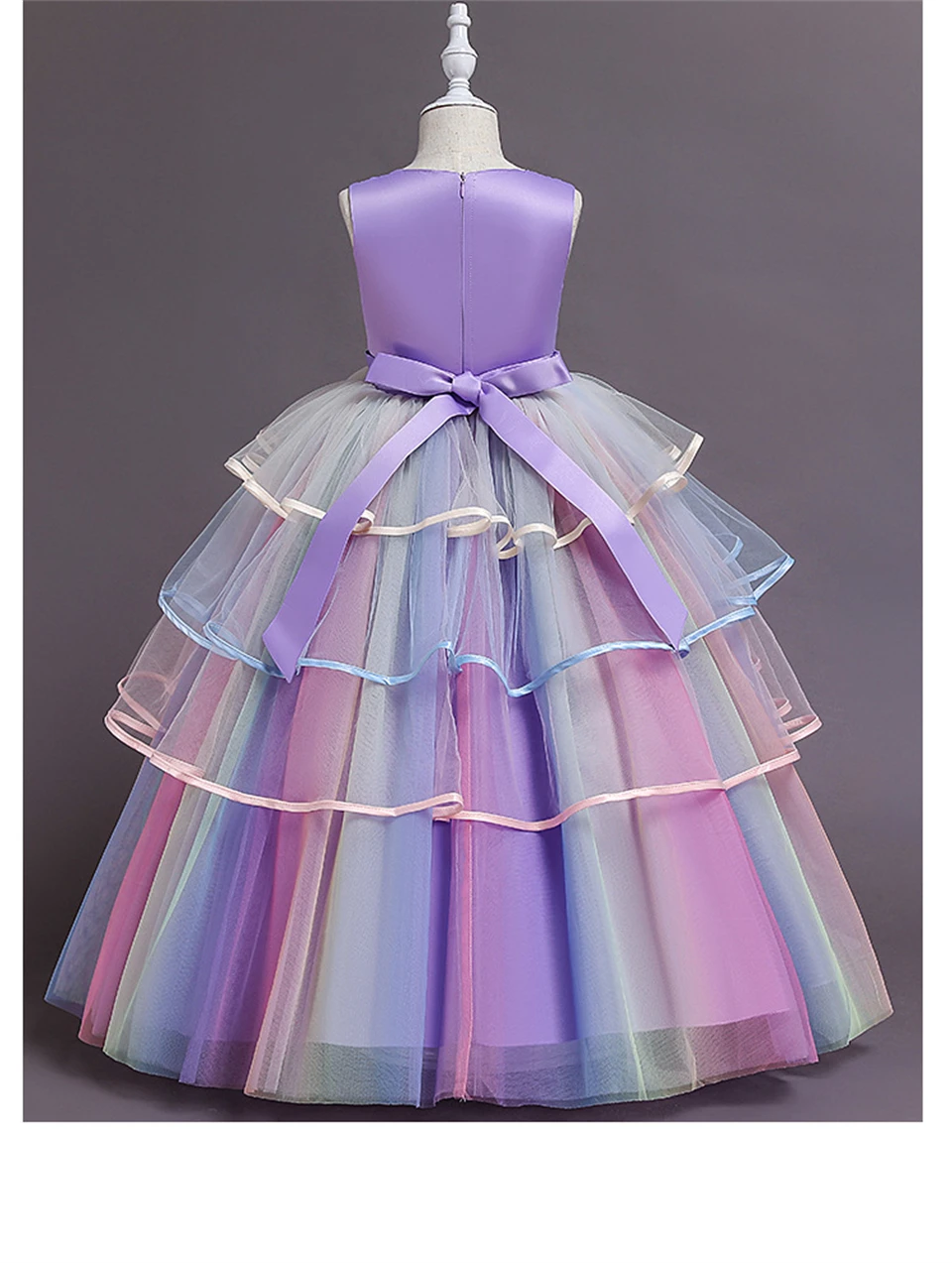 Children Christmas Rainbow Unicorn Elegant Dress for Girls Flower Colorful Fluffy Mesh Princess Birthday Party Pageant Dresses