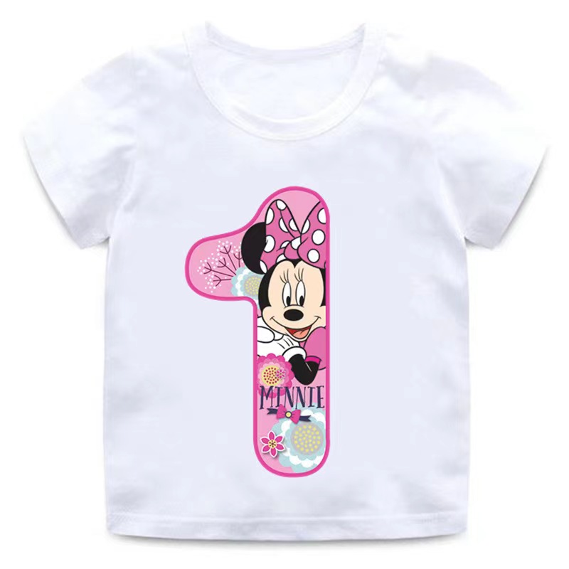 Children clothes tops minnie mouse Birthday Number Children T-shirt Kawaii Clothes for Girls T Shirt Anime Cartoons Casual Kid Boy Short Sleeve Tops