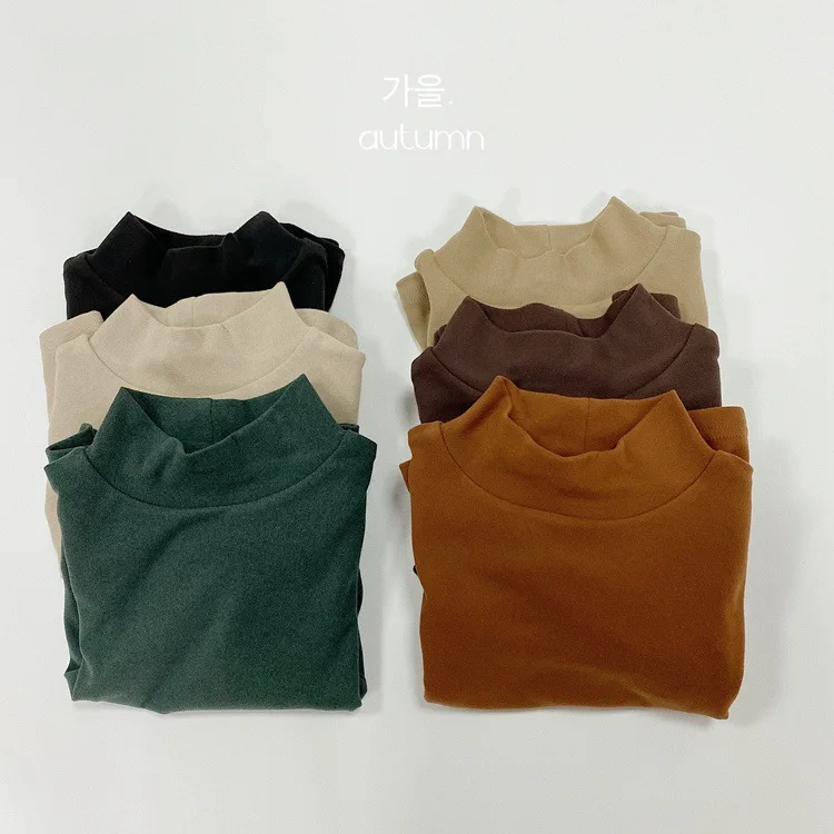 Childrens Boys Tops Retro Soft Cotton Half High Neck Bottom Toddler Boys Shirt Autumn Winter Long Sleeve Warm Kids Boys Fit Top