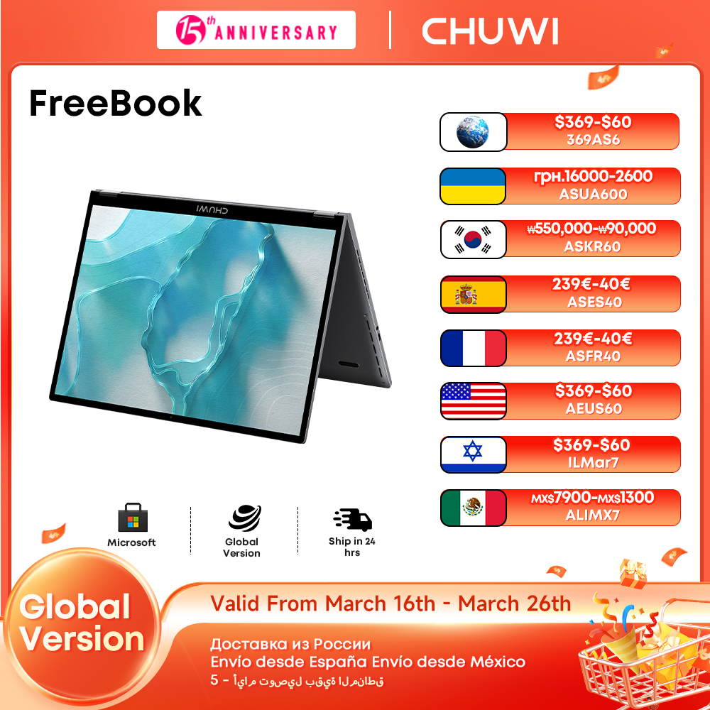 Brand: CHUWI Model: FreeBook (N100)/i3 1215U; OS: Windows 11 CPU: Intel Alder Lake-N N100/Intel Core i3-1215U; Core: Dual Core, Up to 0.8GHz-3.4GHz Battery: 38Wh,7.6V |