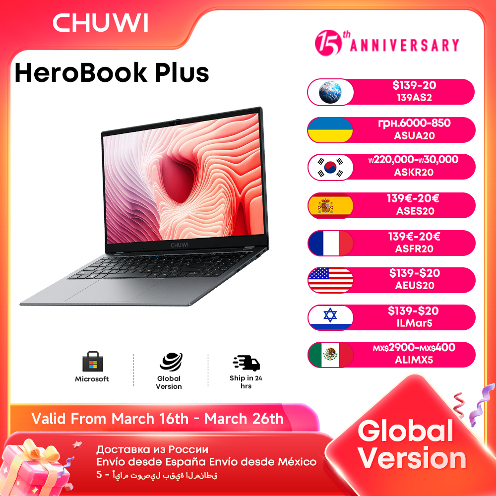 – CHUWI HeroBook Pro laptop is equipped with a 14.1-inch FHD IPS screen, 1920x1080p.