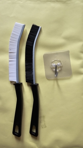 I think it would have been a bit better if two of the brush-hanging, too. Black is trying to write in the bathroom, white in the kitchen. I always clean the edge of the toilet lid with a black brush. I can't peel it off until it's hard to wipe it with a scrubber, because it won't be erased with a scrubber.