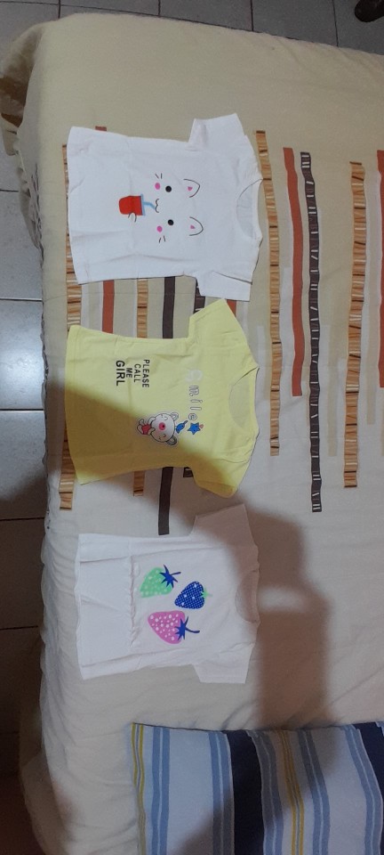 In my opinion they are A little big for a baby from 6 months to 9. I liked 2 of the shirts but the third one is not, it is an ugly pink for a girl and with black letters it is even worse. In short, it is already known that when you cannot choose the pattern is what there is, you are exposed to being sent things that we do not like. I do not think I will repeat the experience but, I will leave the maximum number of stars because the seller has fulfilled his promise and did it very quickly as well. I think that to be successful with this type of purchase one must buy 10 or 20 pieces at once to have a chance of getting a good purchase. Fabric quality is good