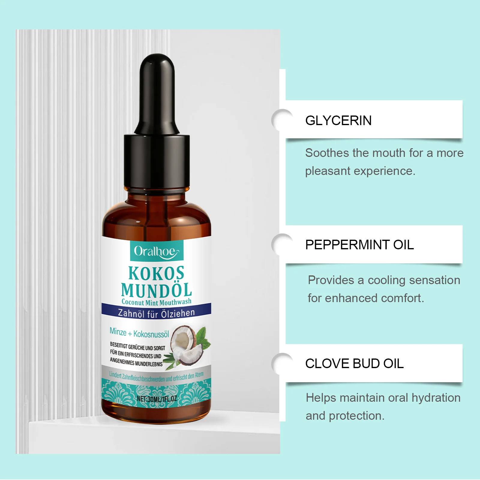PRODUCT NAME: Coconut Mint Pulling Oil Mouthwash Coconut Pulling Oil Mouthwash Lasting Fresh Alcohol-Free Oral Hygiene Cleaning Mint Mouthwash.