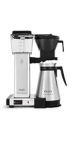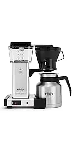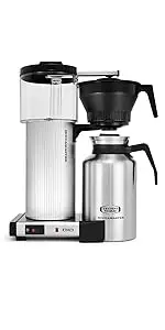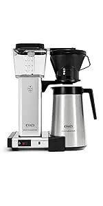 The Moccamaster kbts 79212 Silver coffeemaker features a thermal carafe and a manual-adjust, drip-stop brew-basket which provides adjustability in how fast Coffee flows into the carafe. The kits coffeemaker brews a full 32 Ounce carafe of Coffee in six minutes. The thermal carafe will keep your Coffee hot up to an hour. To keep Coffee hot longer or for traveling with your carafe, switch to the included travel lid. All Moccamaster Coffee Brewers are handmade in the Netherlands and backed by an industry leading 5-year.