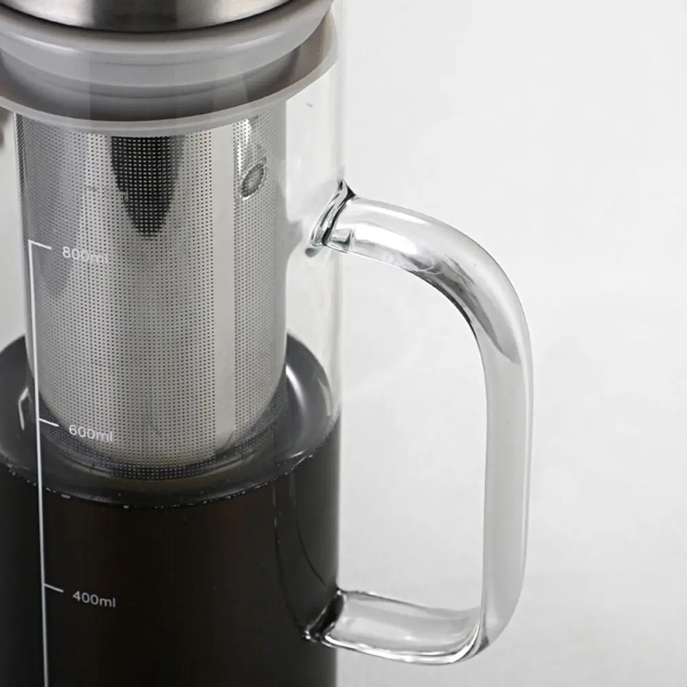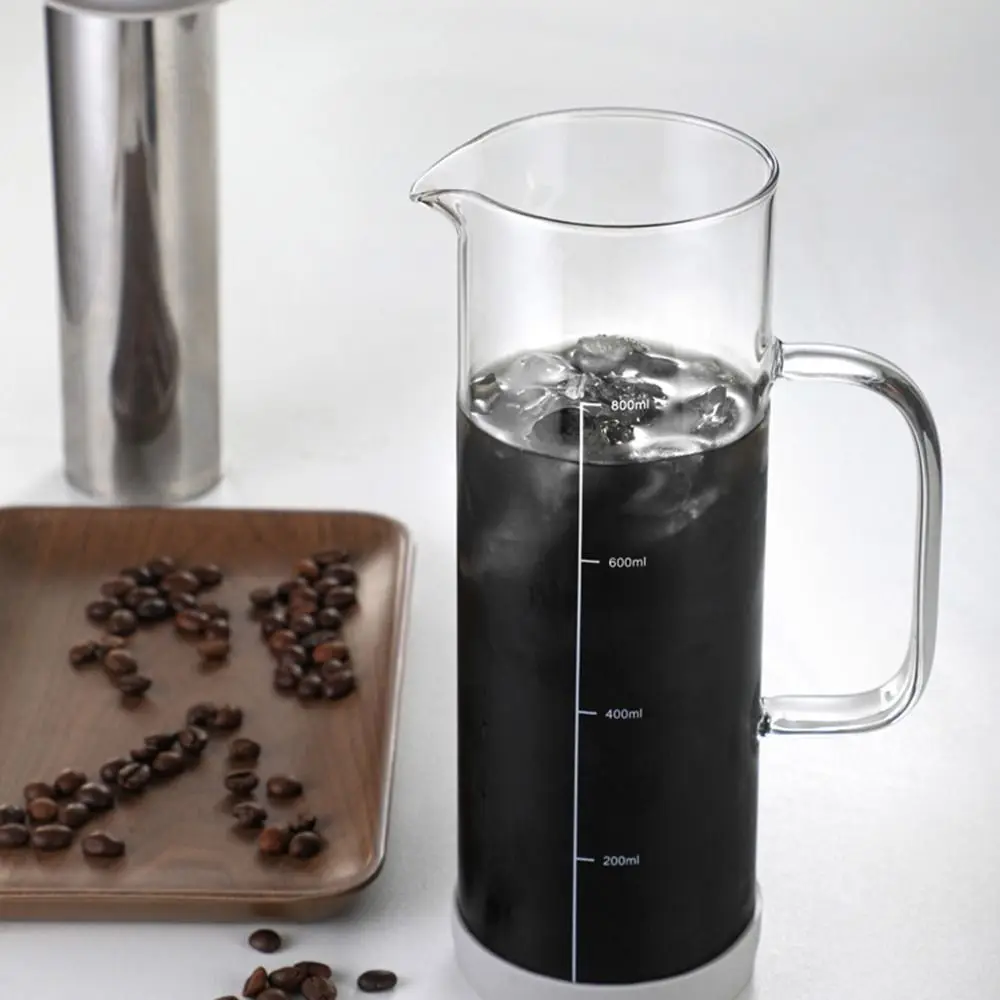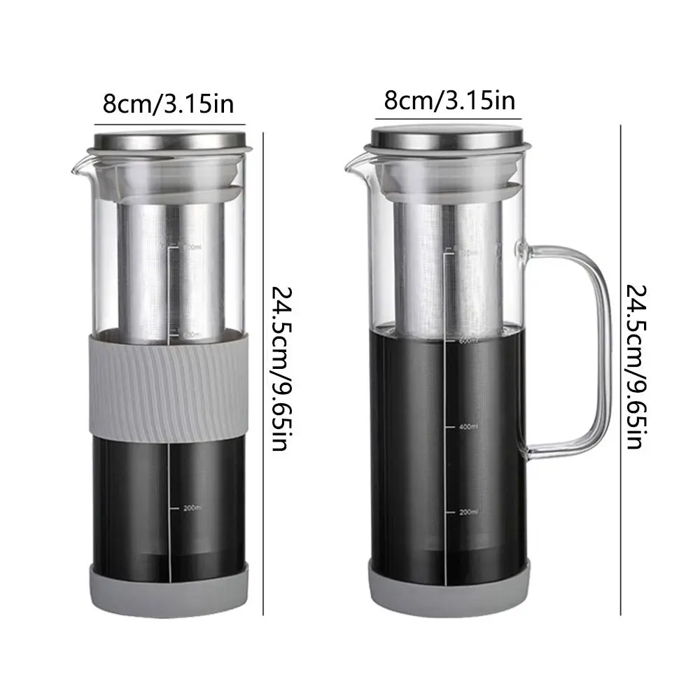 Excellent Quality Rest Assured To Use – Food-grade borosilicate glass coffee carafe can be filled with ice or hot water, providing a variety of possibilities for use, thickening quality, sturdiness, and long-term use. The big and strong handle saves you unnecessary worry when you making ice coffee.