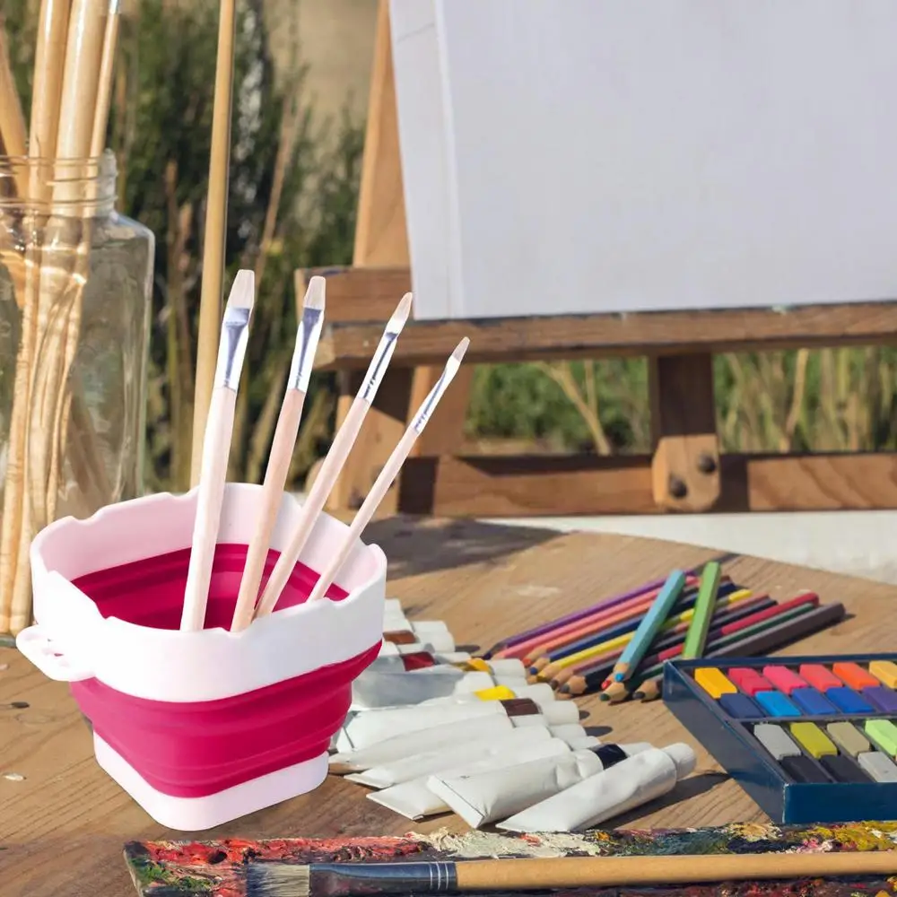 3.Foldable and Portable: This paint brush washer can be folded flat for easy storage and transportation, and it can hold multiple brushes of different sizes, including longer brushes that need enough depth to soak and clean.