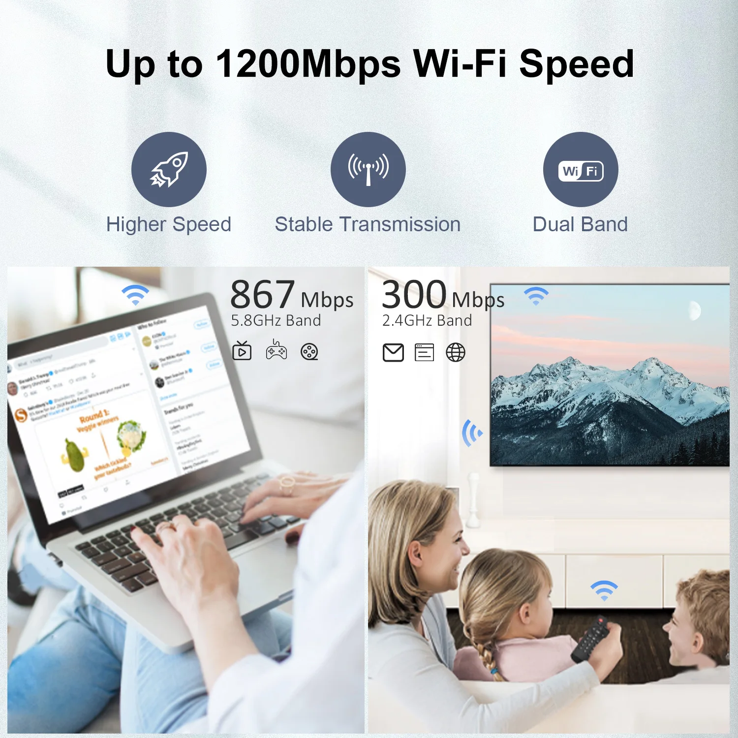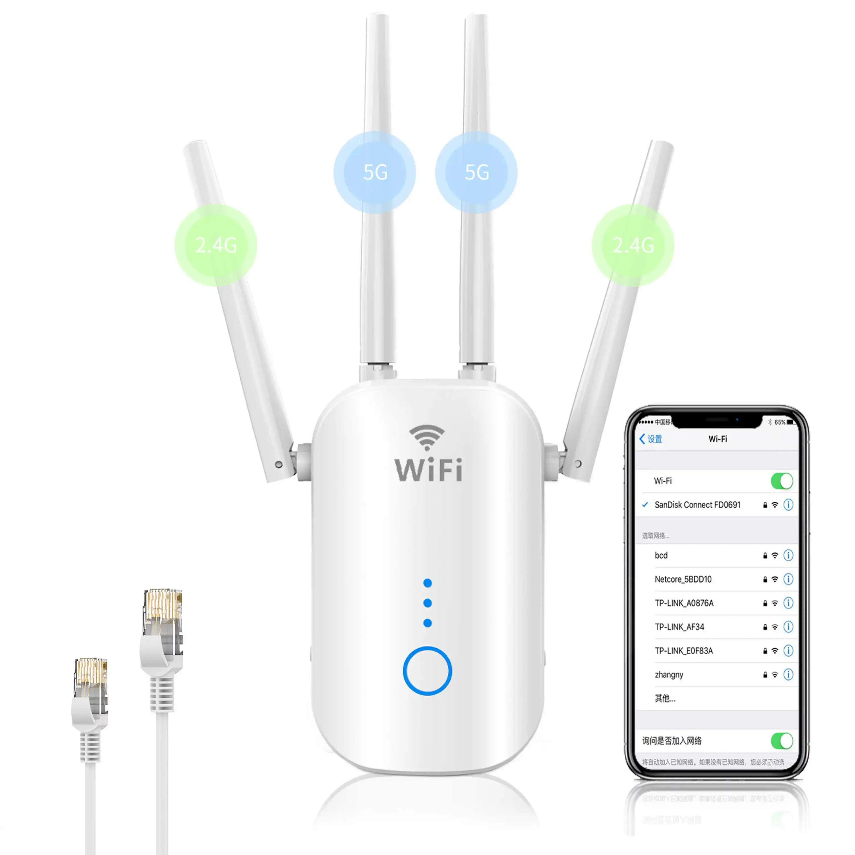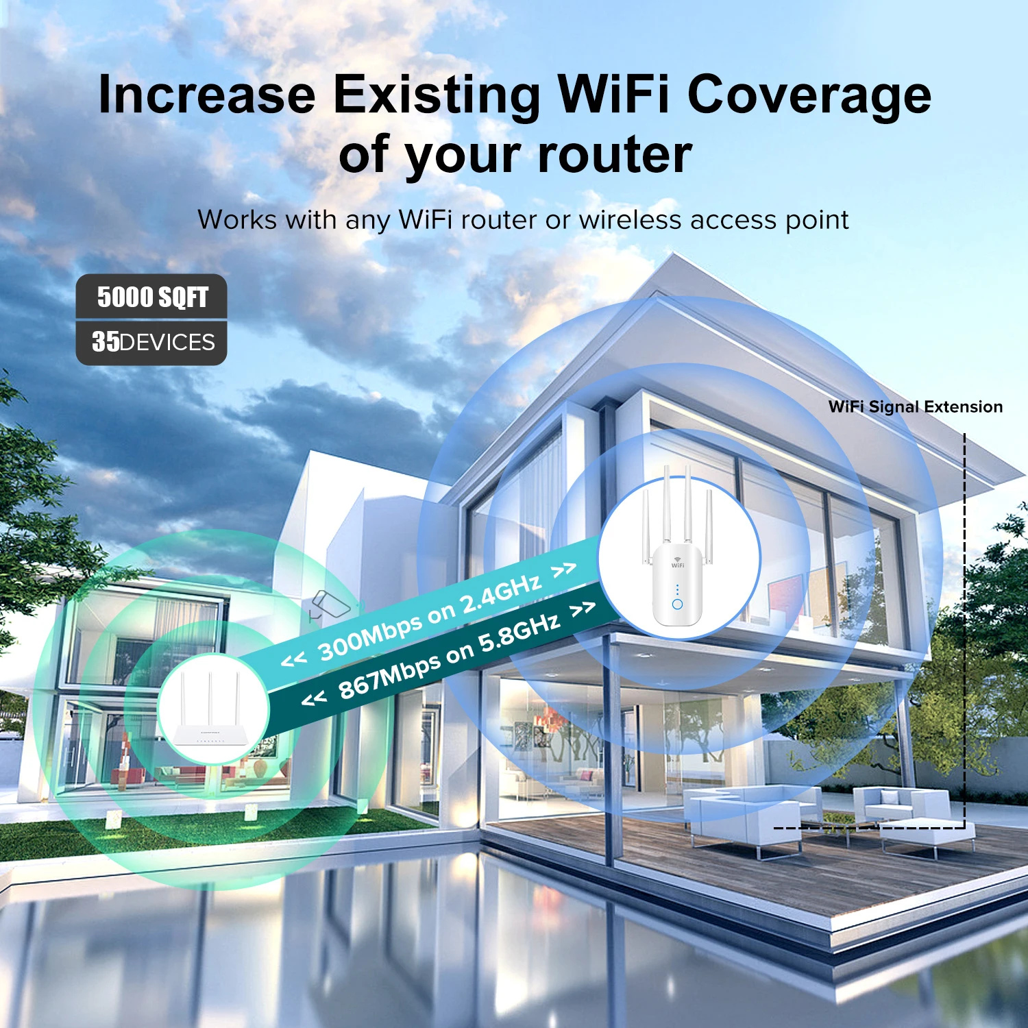 AC1200 WiFi Extender 802.11AC 2.4G&5.8GHz Dual Band WiFi Repeater Home Router Wireless Signal Range Amplifier 4*3dBi Antennas AP