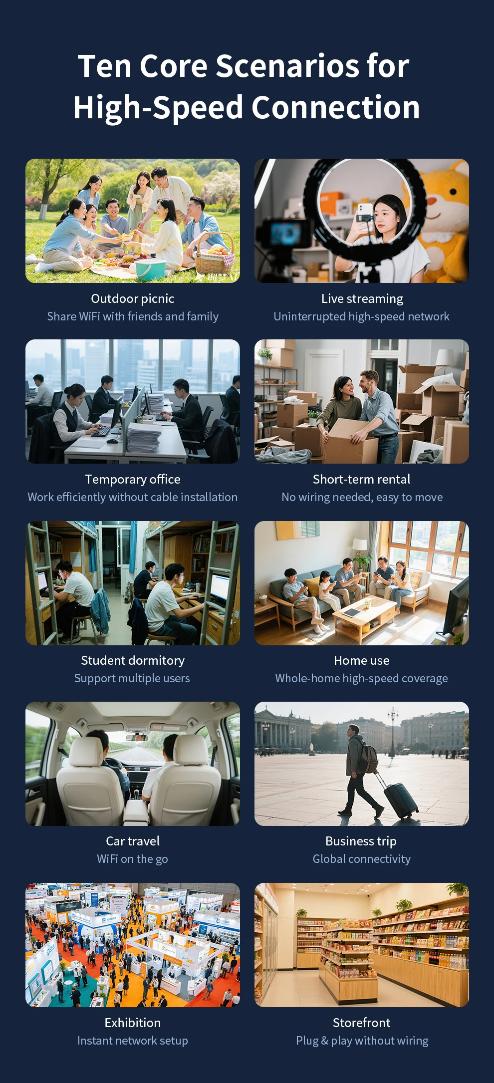 From home fixed networking to outdoor mobile office, from temporary hotspot construction to multi-device hybrid connection, no complicated