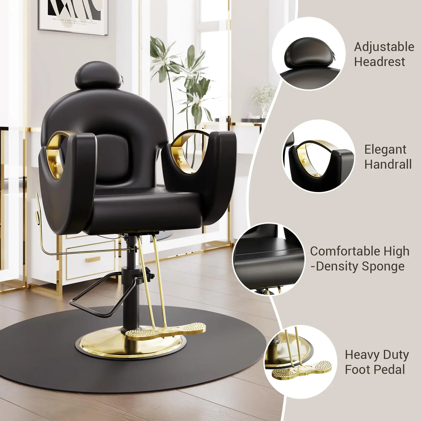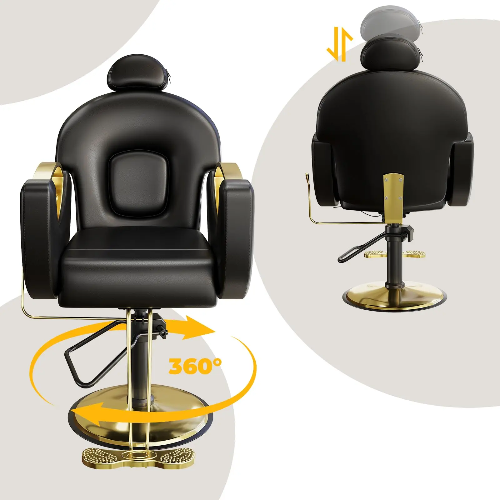 • Hollow dual-metal armrests and glossy gold square base for a premium look.