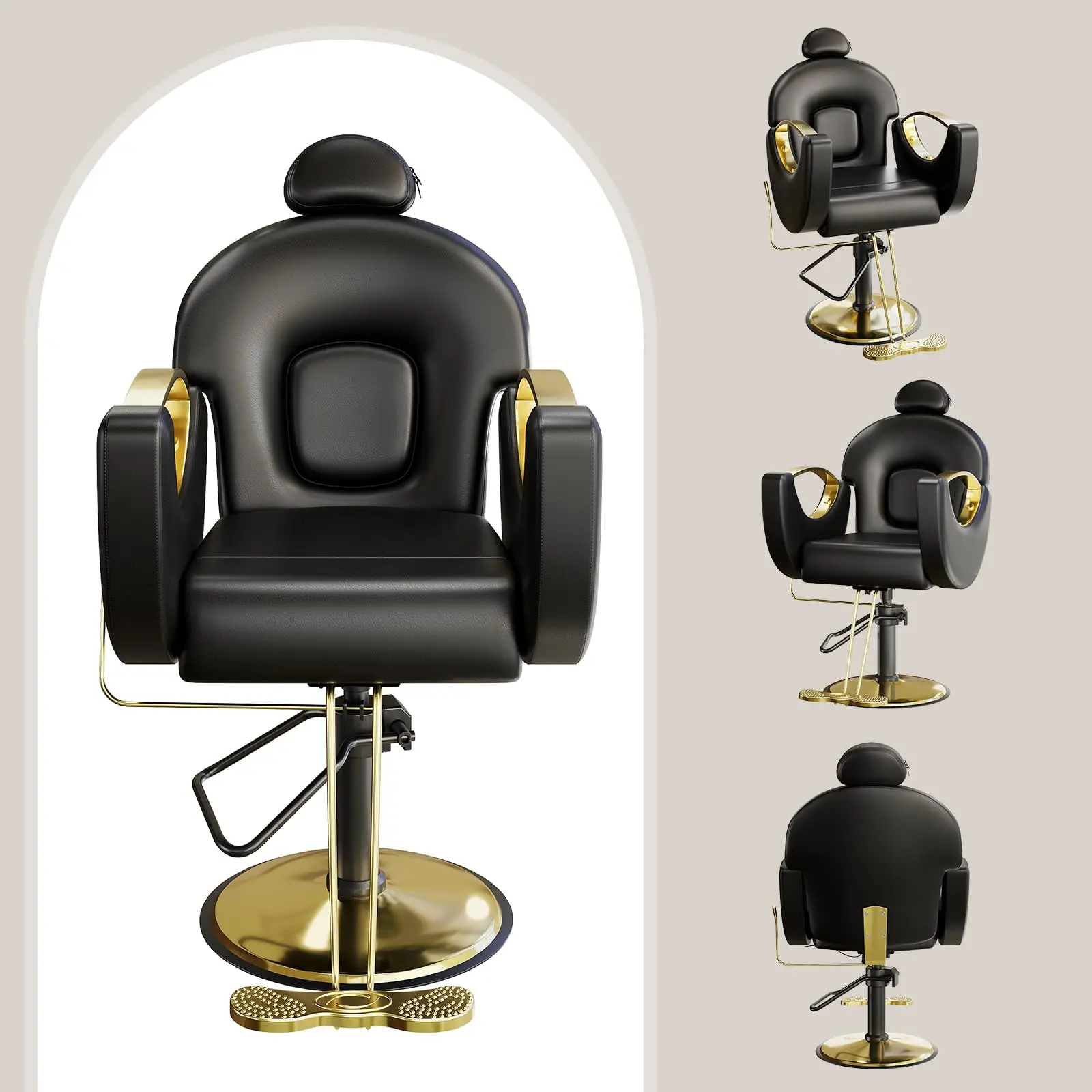 • Reclines up to 130° for comfortable haircuts, shaves, and shampoo services.