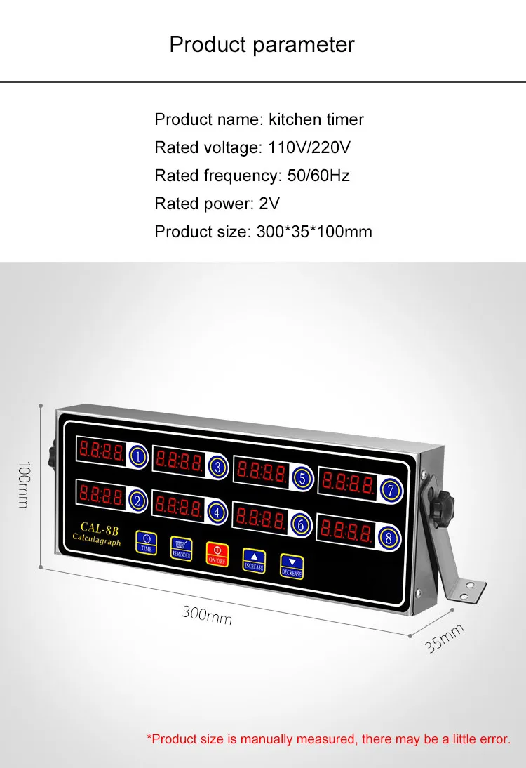 Commercial Eighth 8 Channel Electronic Countdown Kitchen Timer Digital Button Timing Reminder Restaurant Loud Alarm Clock 110V