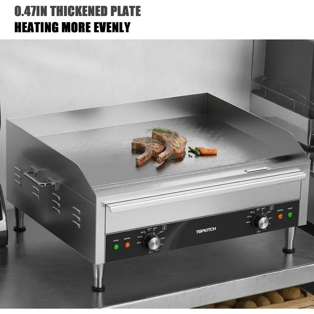 - 【Precision Temperature Control】Temp. range 122-575℉, you could choose the temperature according to your dishes. Dual cooking area and temperature control to meet your fast demand in rush hour. This electric griddle is very suitable for caterers, backyard cooks, steak shops, snack bars or restaurant use to cook everything from pancakes to blackened ribeye