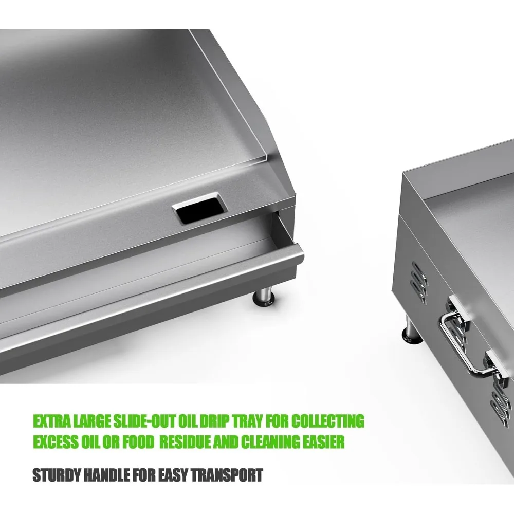 - 【Large cooking area】24 inch*16 inch large cooking area, The 12mm thick steel cooking surface heats evenly throughout for consistent cooking results, no matter where you place food on the griddle plate. You can cook multiple dishes at the same time on this griddle to meet your fast and large demand. It is the best choice for commercial use