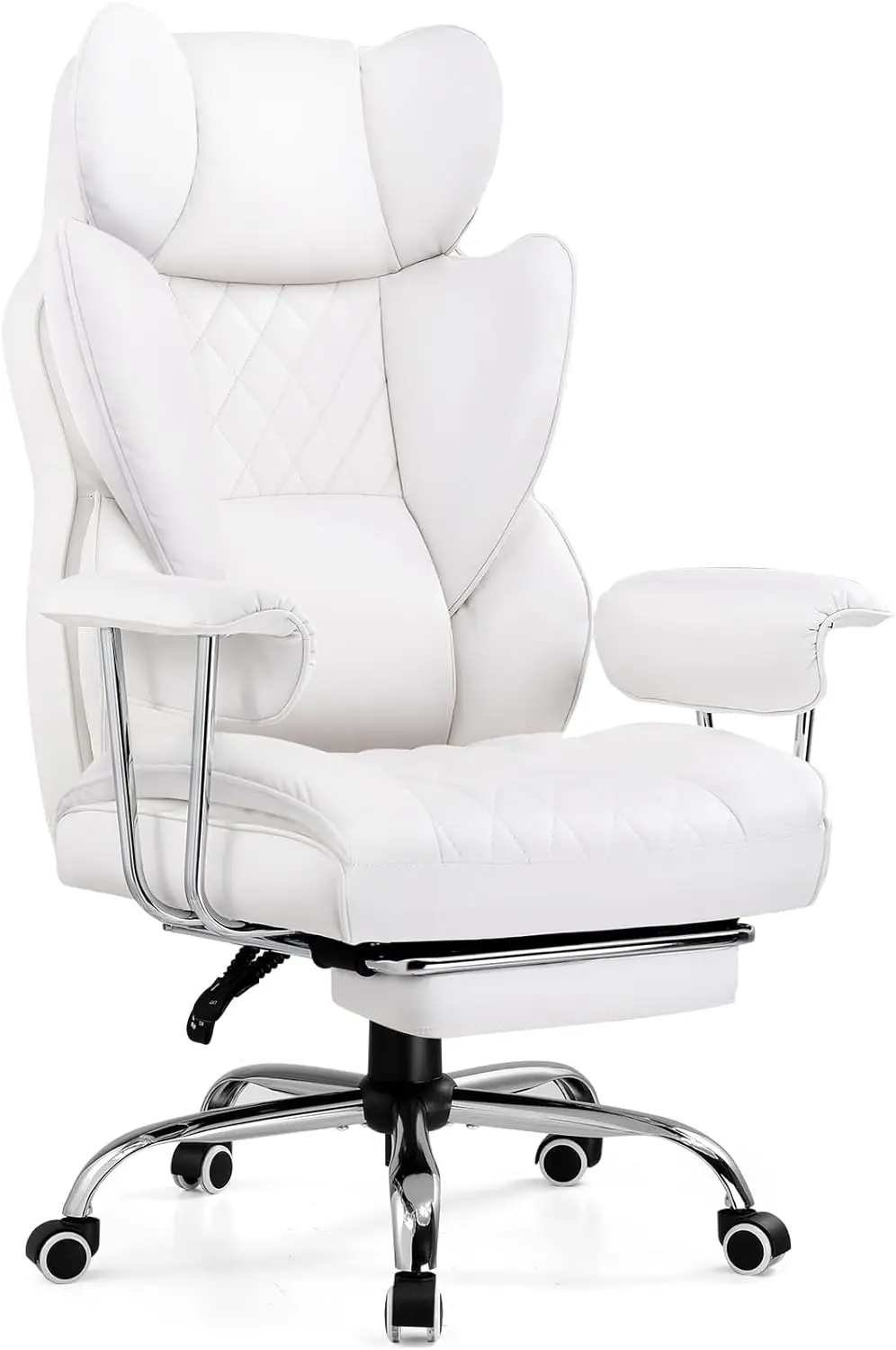 - FLIP HANDRAIL:The armrests of the computer chair can be moved up and down. The comfortable armrests can relieve the discomfort of the elbow area.Folding the armrests up 90°, you can push the executive office chairs directly under the desk to save valuable space.