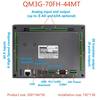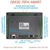 QM3G-70FH-44MRT(16R4T):7inch HMI PLC all in one, 24DI 20DO(Maximum 16 relay outputs, Y20-Y23 are fixed as transistor outputs),Optional maximum 12 Analog inputs and 8 Analog outputs, 1RS232(HMI), 1RS232(PLC),1RS485(PLC).