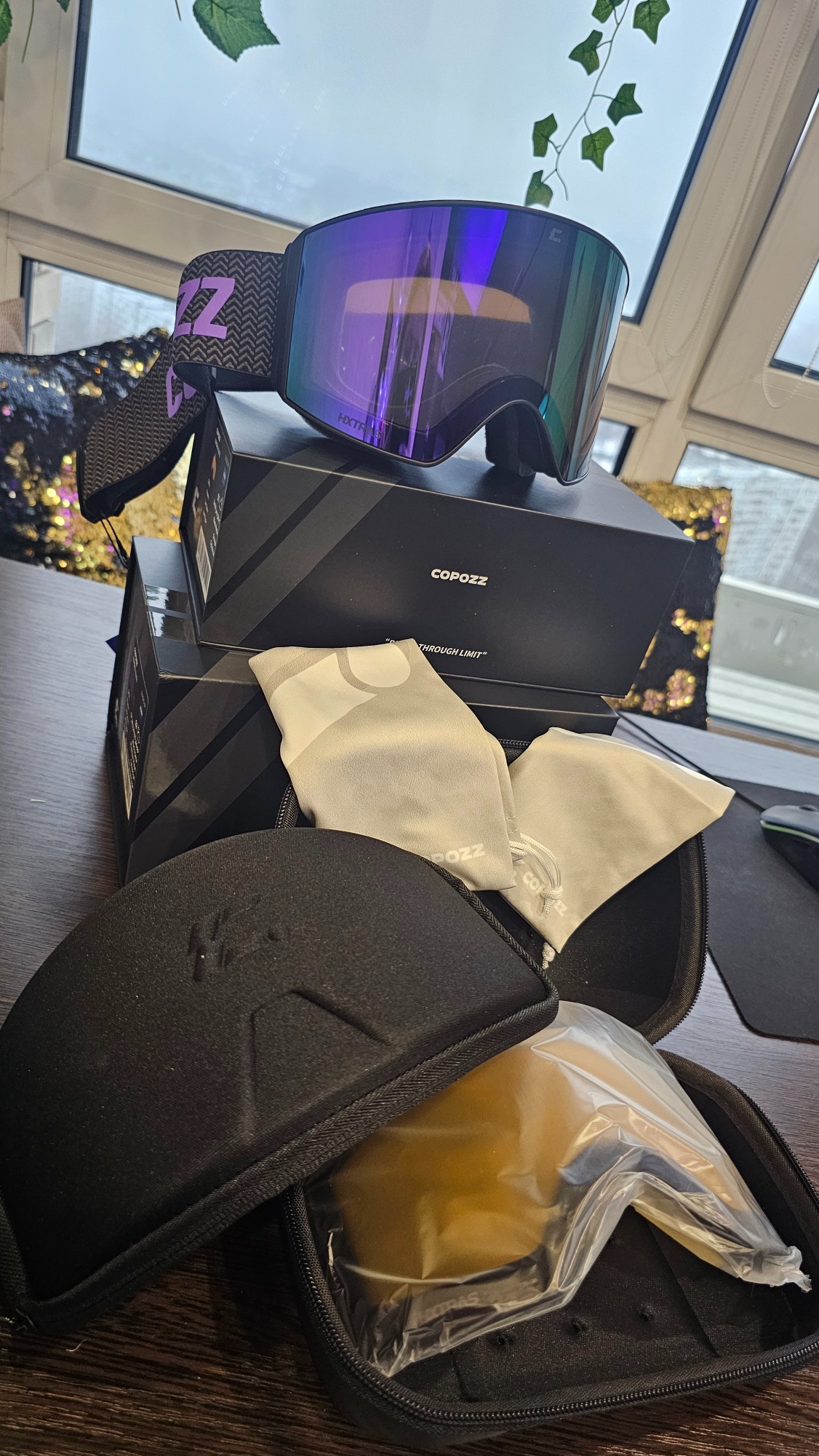 Excellent product packaging, amazing color. Separately, I would like to mention that the replacement lens comes in a separate box and in a separate hard case for the lens. This fact really pleased me; it's convenient to take it with you to the slope and save space. The magnets in this model are stronger than in regular Copozz. For now, I can't say anything more - I need to go riding.