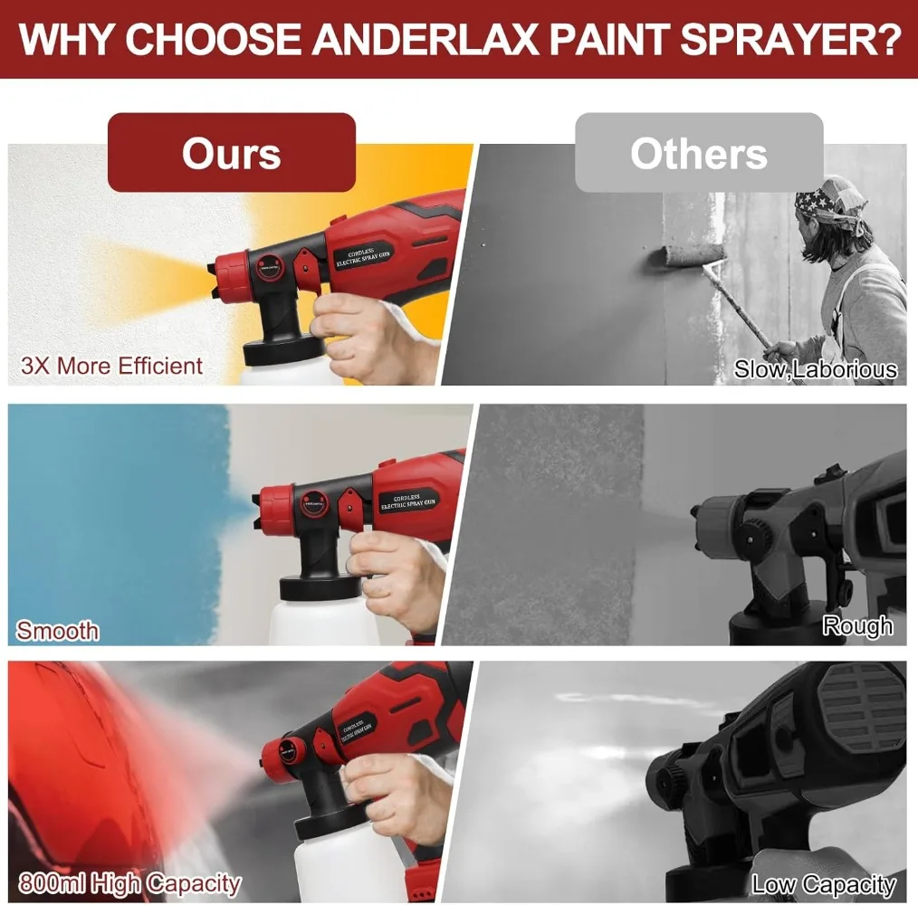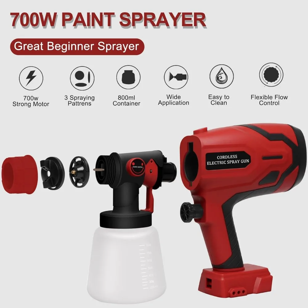 - 【Advanced Technology & Design】The 700W high-power motor is more efficient, which would be a much faster Paint tools than a roller or brush. Paint spray gun flow rate is 1000 ml/min, maximum viscosity upgraded to 100 Din-s. The spraying effect is greatly improved, and a smooth and high-quality paint surface can be sprayed. It is suitable for thinning a wide range of materials such as latex paints, chalk, stains, sealers and varnishes.