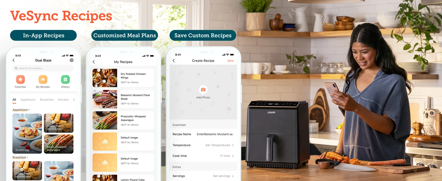 Fits 4 lbs of French Fries or 25 of chicken wings in the large 6.8qt basket, perfect for 5-6 serves.