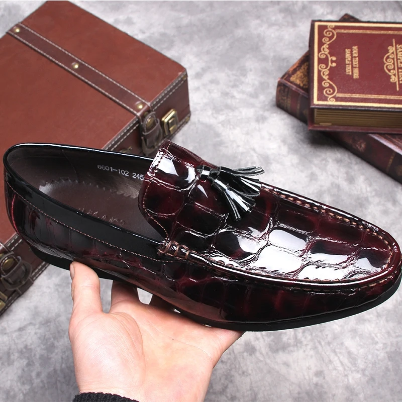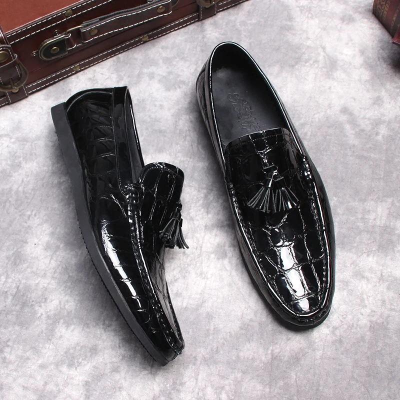 Crocodile Leather Loafer For Men Italy Brand Moccasin Oxfords Driving Shoe Luxury Design Dress Shoe Male Italian Tassel Footwear
