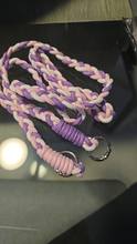 The color is as seen in the photo. Correct product length and quality is good. The braiding is nice and looks tough. This model does come with the plastic applicator that allows you to hang it even if you are not one of the ones that have a hook. I would compare it again.