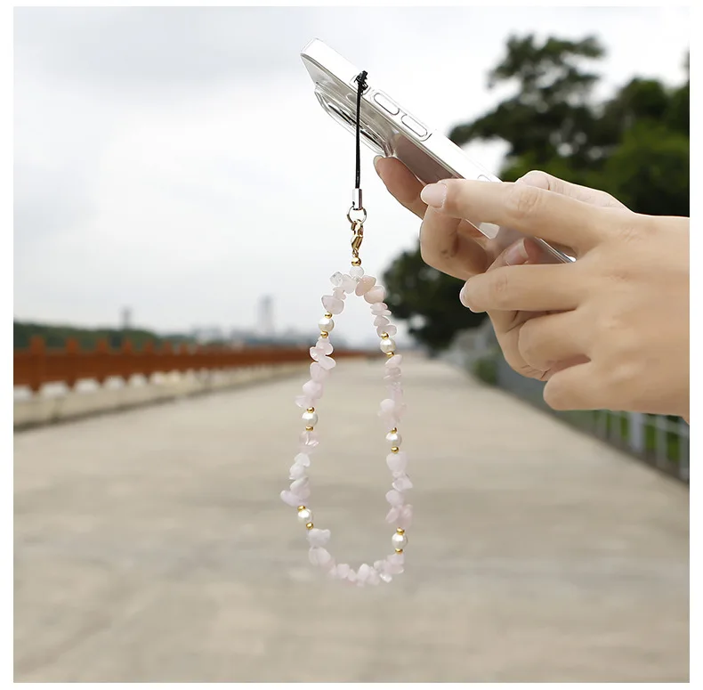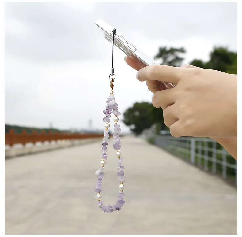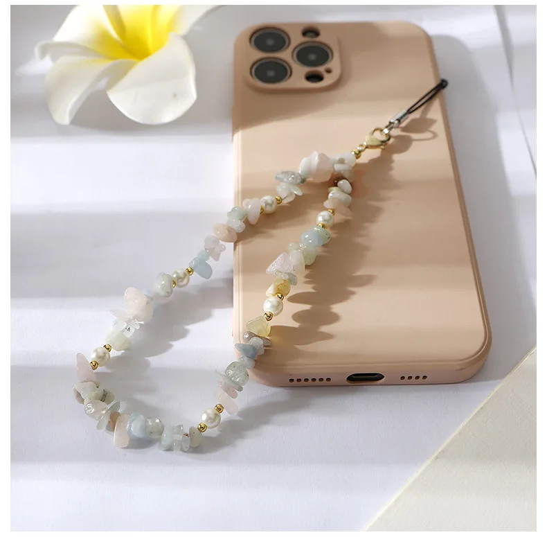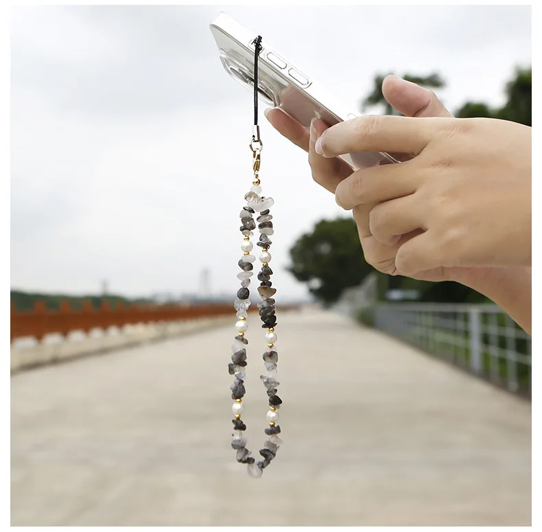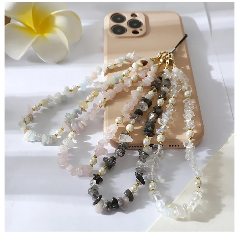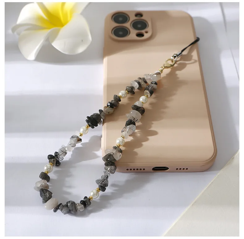 Crushed stone phone chain bead natural stone Amazon stone phone hanging rope for car keychains cameras backpacks phone pendants