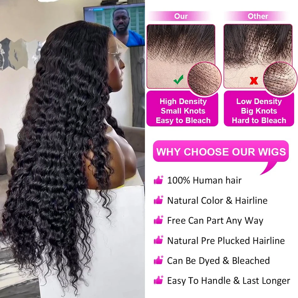 Texture:100% Deep Wave Human Hair Wigs