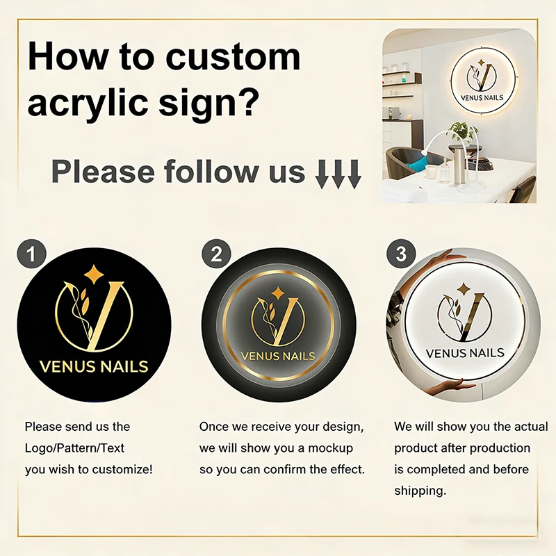 We do NOT accept customize LED neon sign return or refund except quality problems. But we have standard process to ensure the final product meet your requirements.