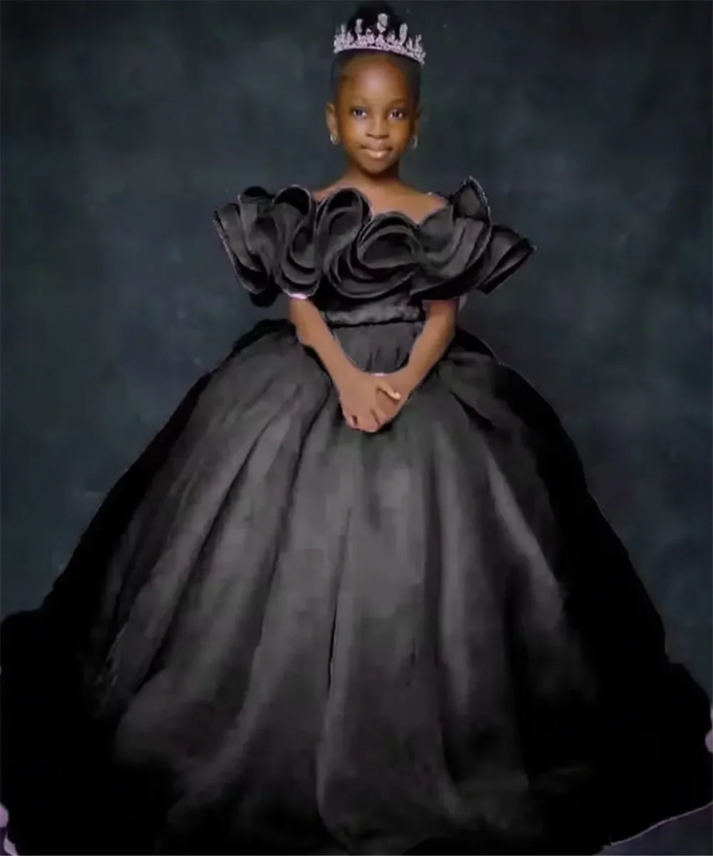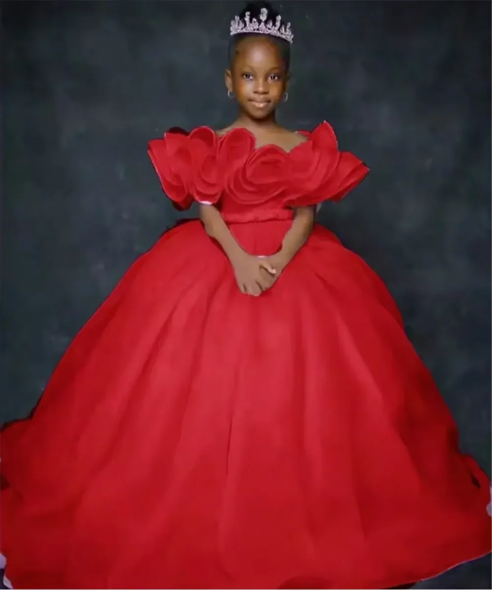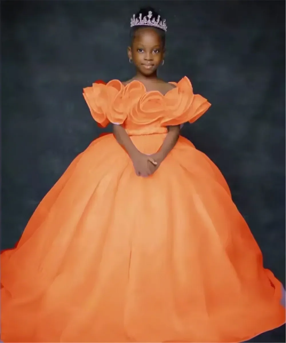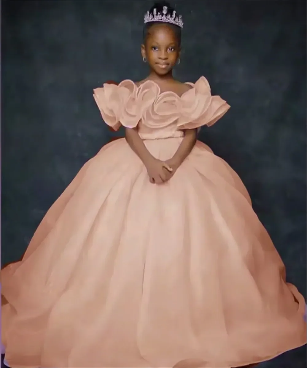 Custom JDY Kids’ Birthday Dress Custom Flower Girl Dress Off-Shoulder Ruffled Tiered Tulle Ball Gown Wedding