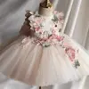 This custom pink floral butterfly tulle flower girl dress offers a unique and personalized touch for your little one’s special occasion.