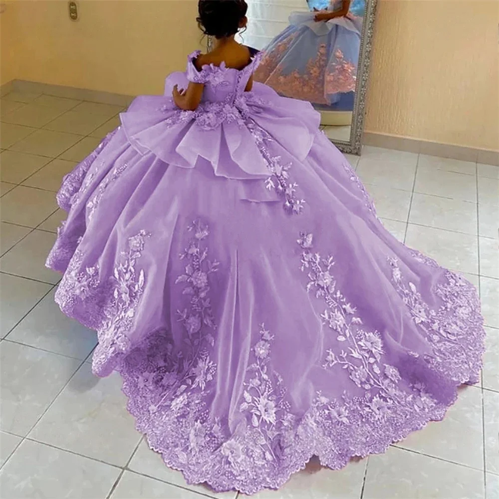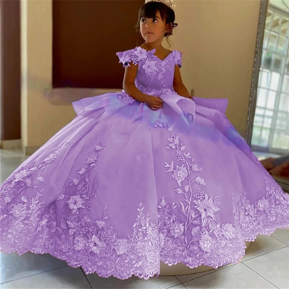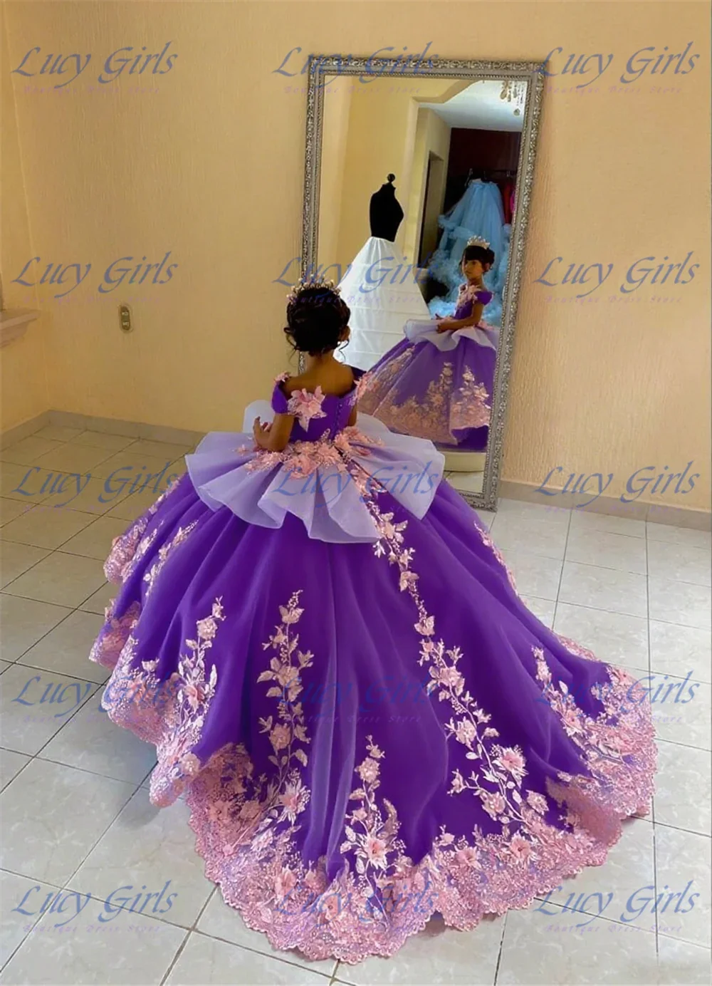 Custom Purple Lace Floral Flower Girl Dress First Christmas Dress Wedding Party Gown for Girls فساتين اطفال سهرة